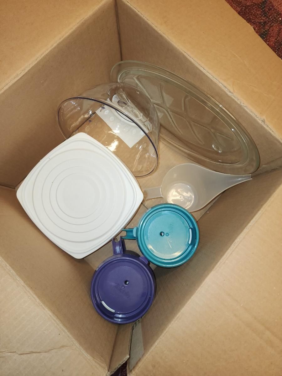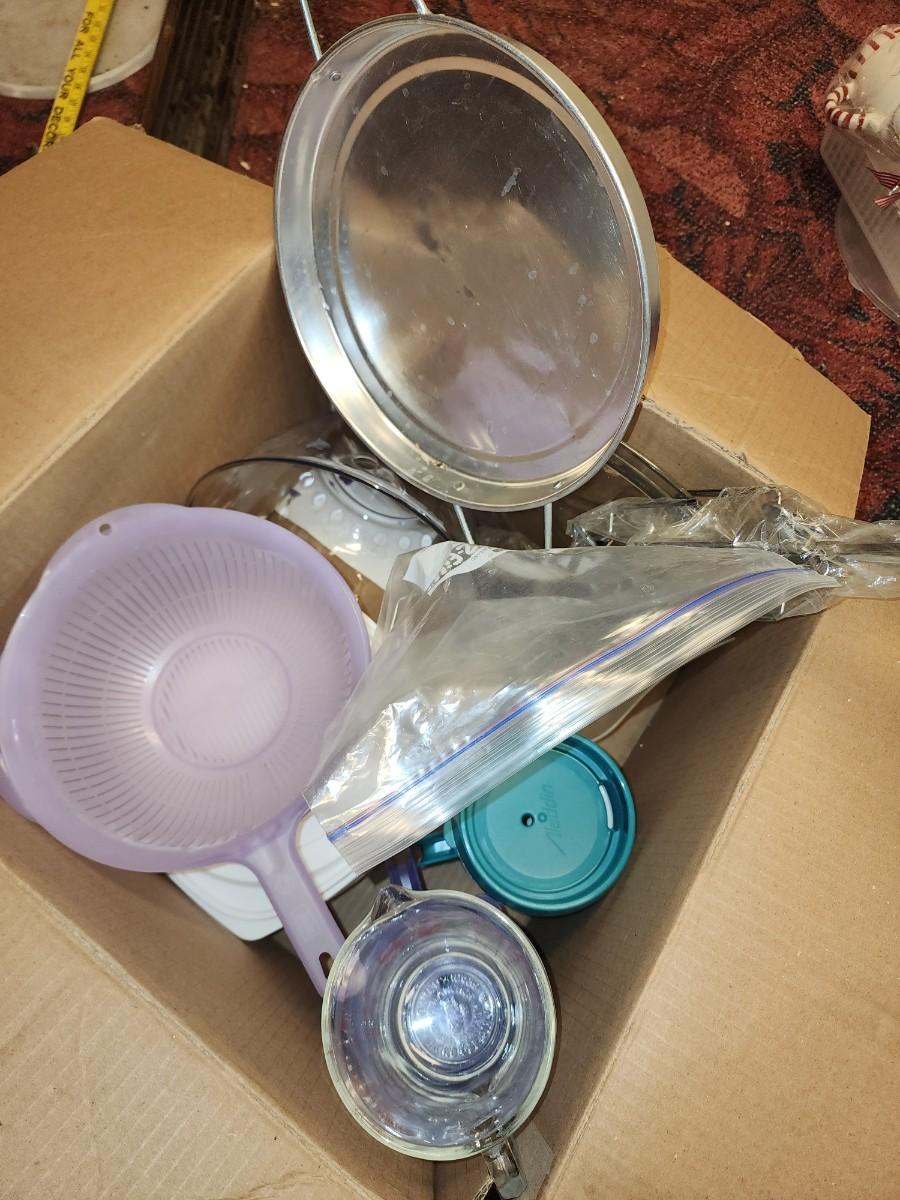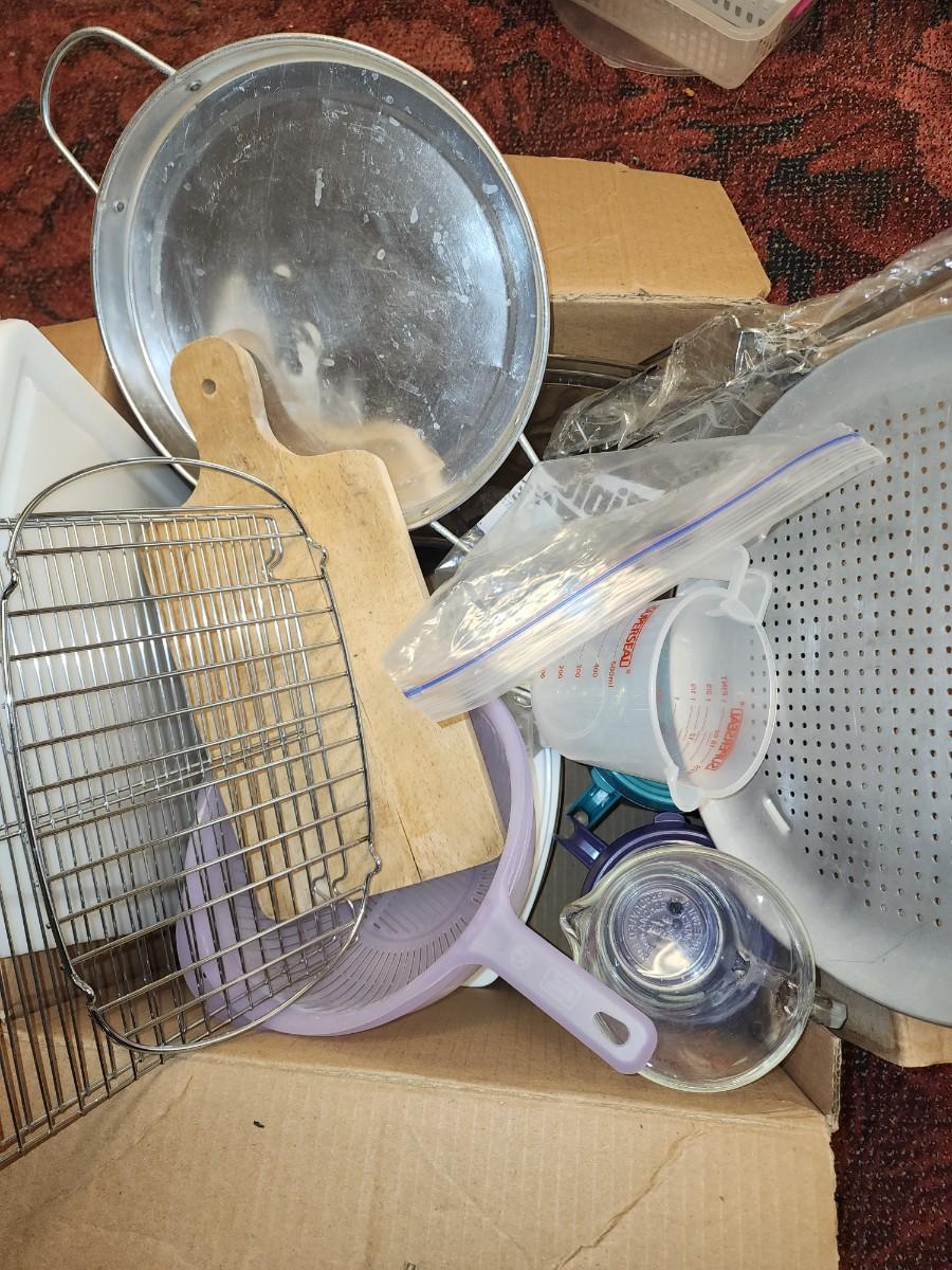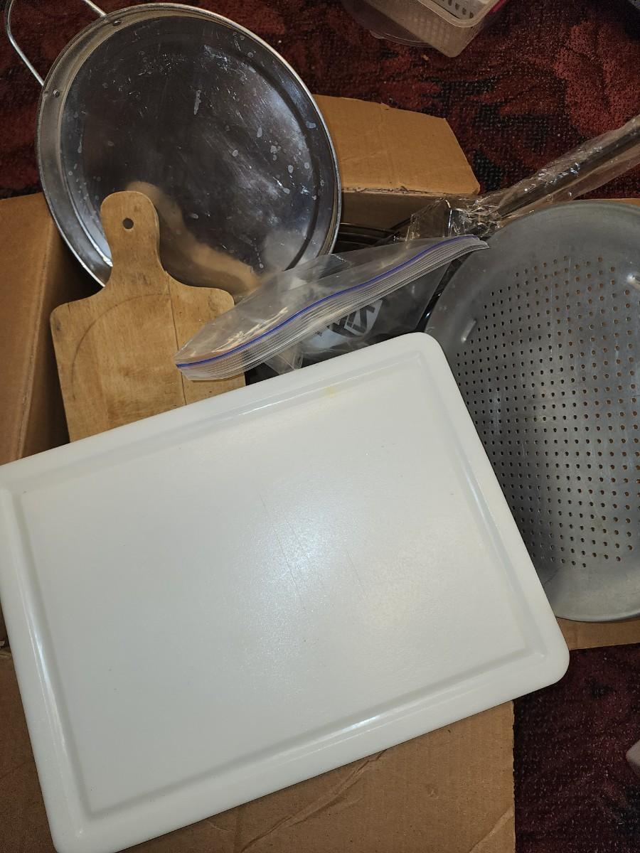 Cutting boards. Pans. Measuring cups. Drinking cups.