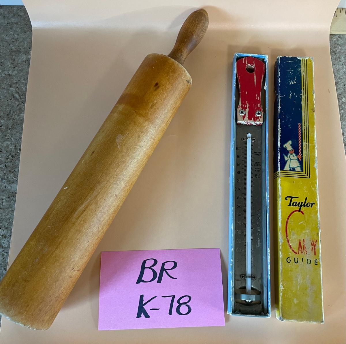 It’s time to make candy!! Taylor candy thermometer and rolling pin, it’s missing one handle as pictured but has lots of life left