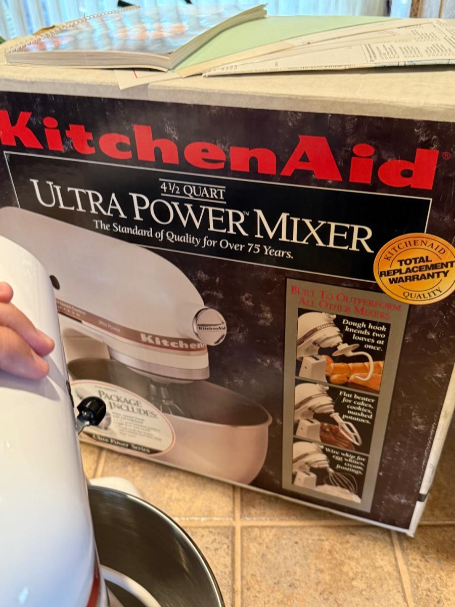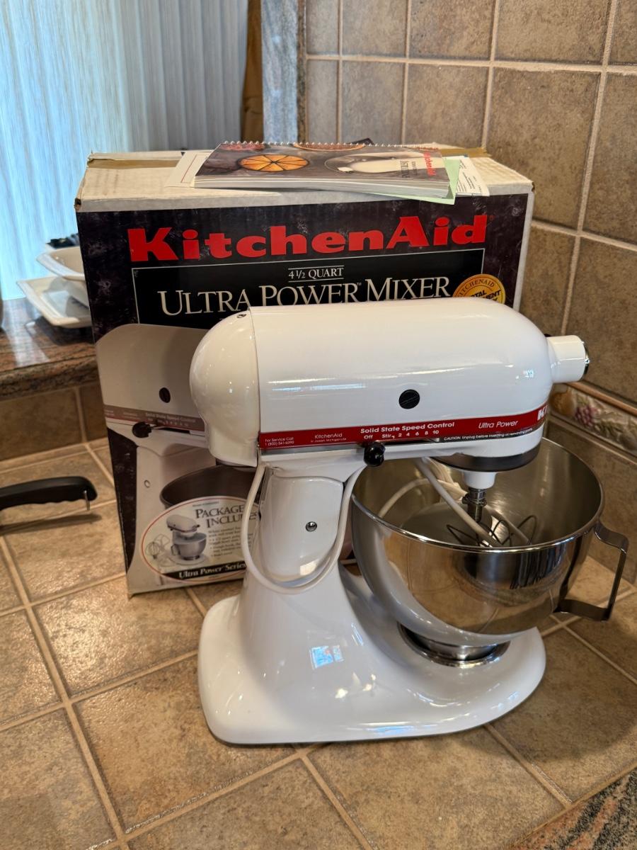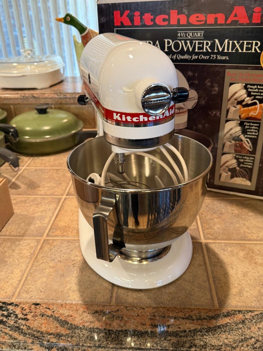 Kitchenaid Ultra Power 4.5 quart white w/red stripe vintage Mixer