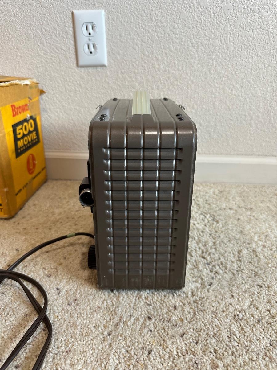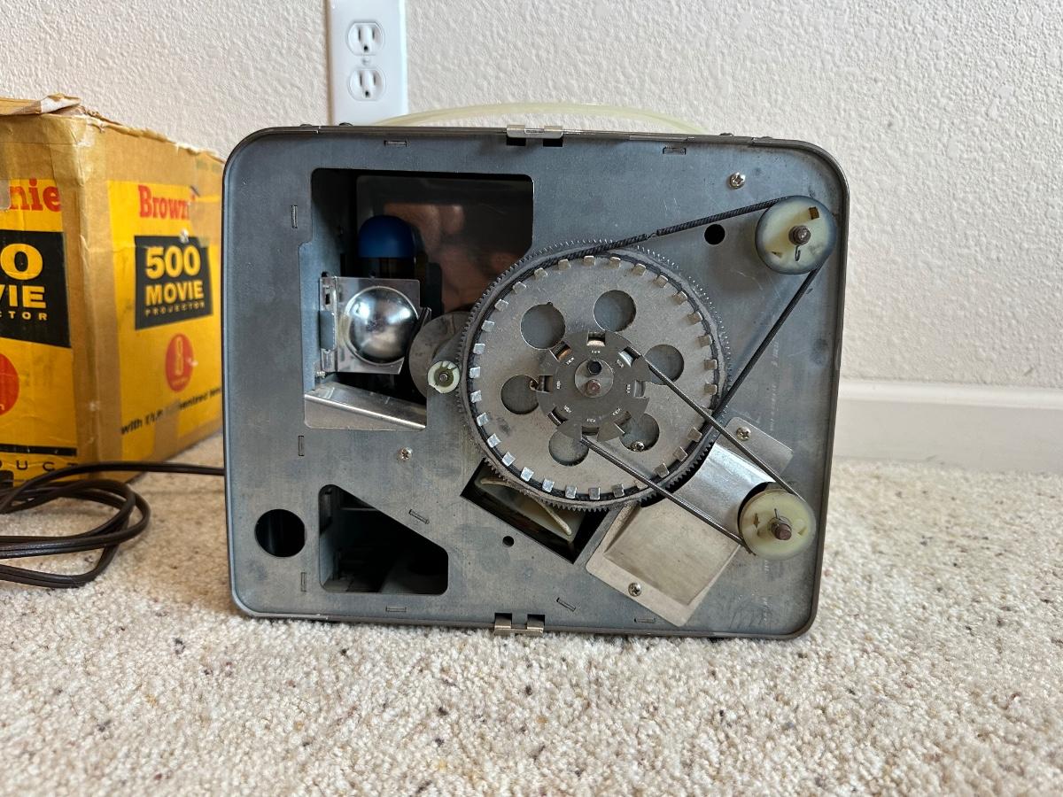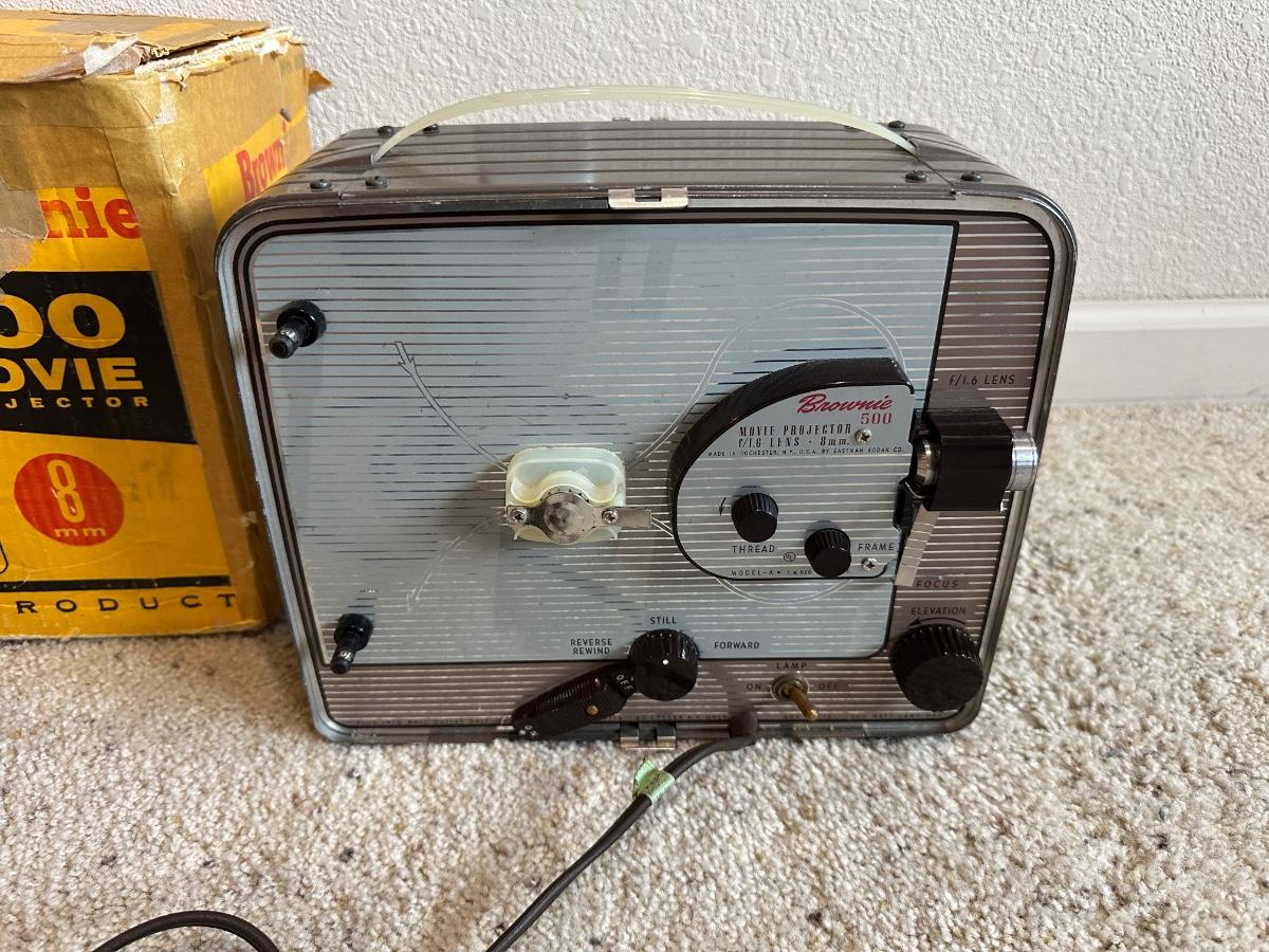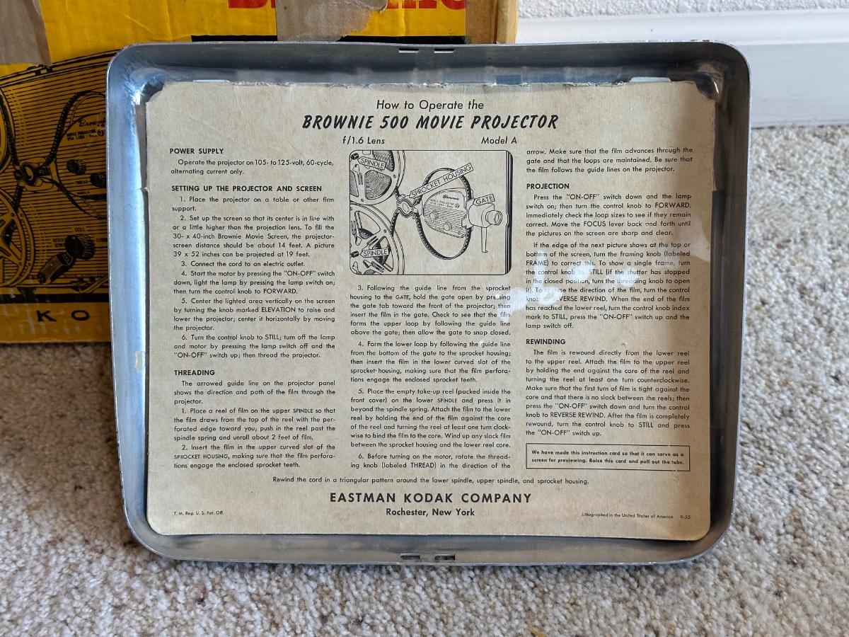 KODAK BROWNIE 500 MOVIE PROJECTOR SUPER 8 W/VARIOUS MOVIES PLUS A PROJECTOR SCREEN