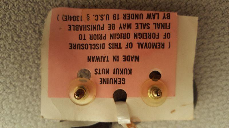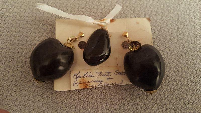 This lot is for a set of Kukui Nut Jewelry as shown in the photos. If you have ever been a tourist to Hawaii you have seen and heard of the various wonders of the Kukui Nut Tree. Used in cosmetics, medicine and as beautiful jewelry. Scientifically known as Aleurites moluccanus, the candlenut, is a flowering tree in the spurge family, Euphorbiaceae, also known as candleberry or kukui nut tree. Donated by Kay Whitlock of Oklahoma.
