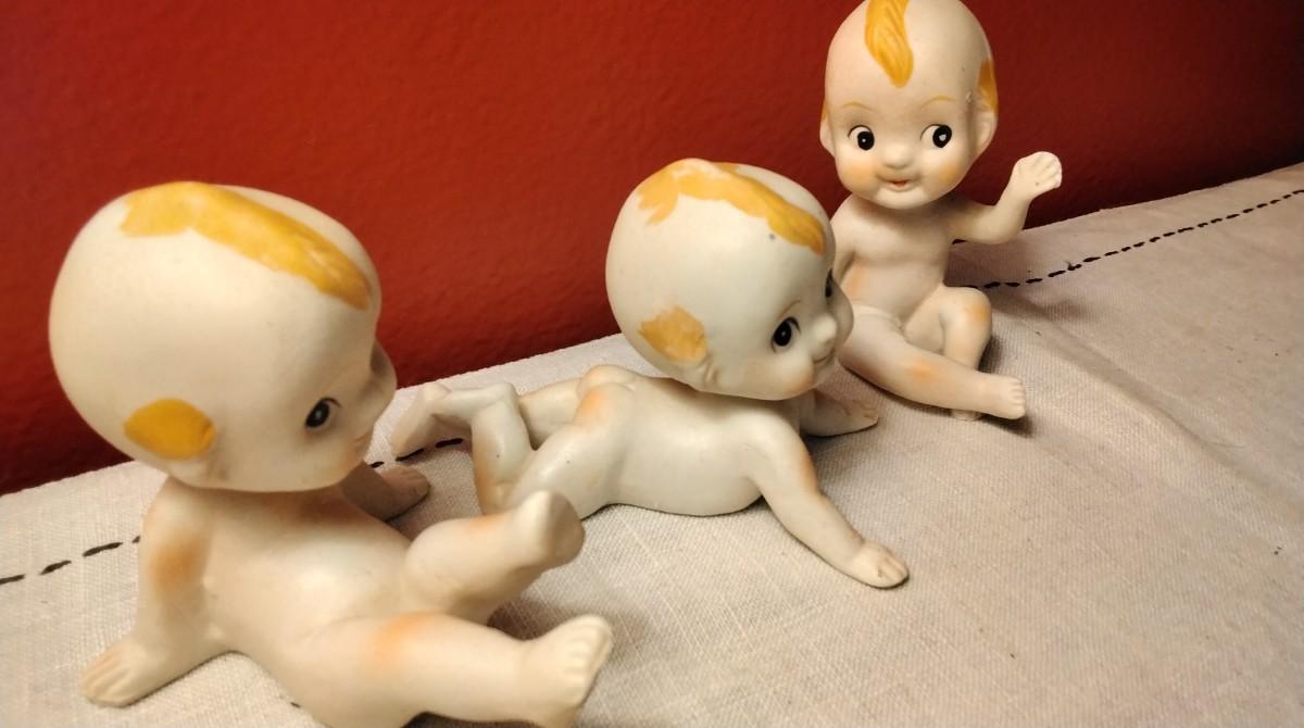 Three adorable Vintage Porcelain Rare Kewpie Dolls! A.A. Importing Co. Piano Babies circa 1960