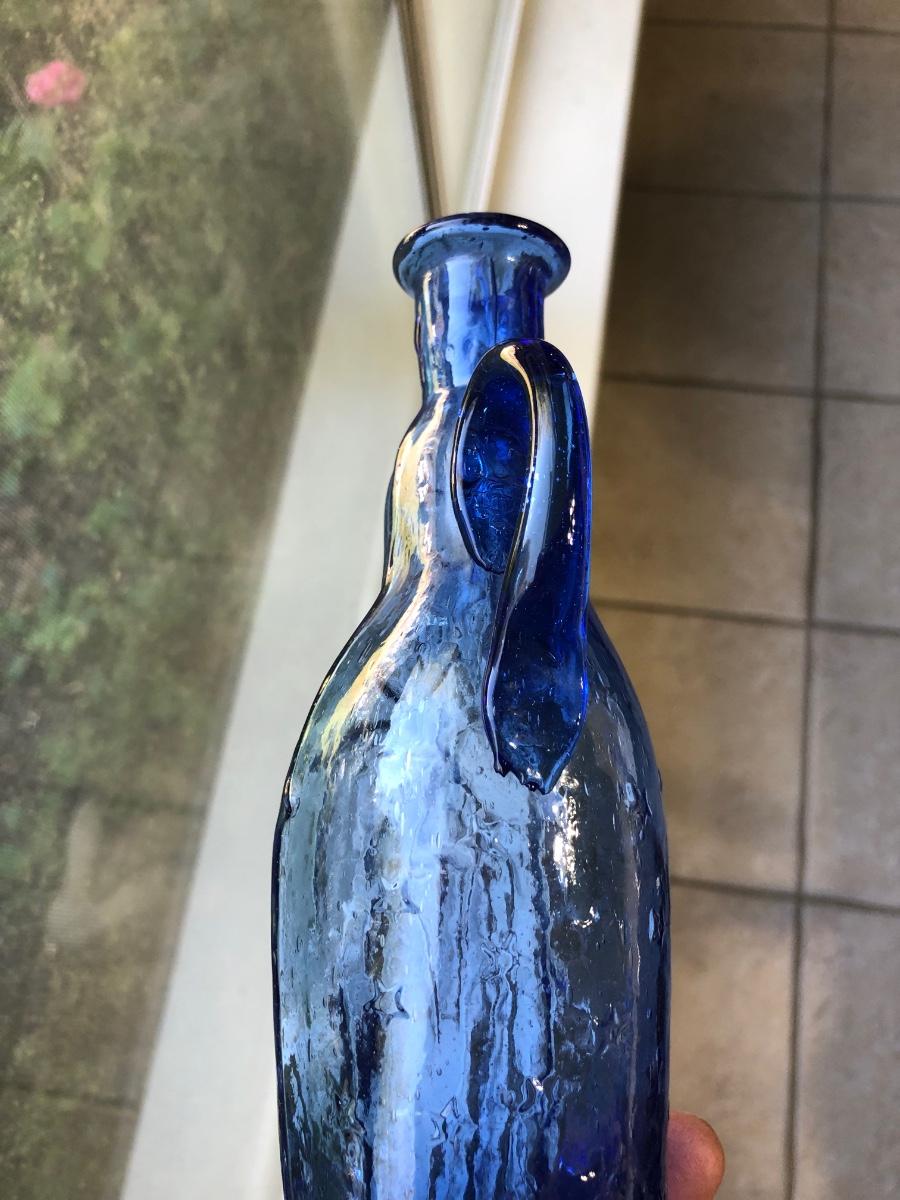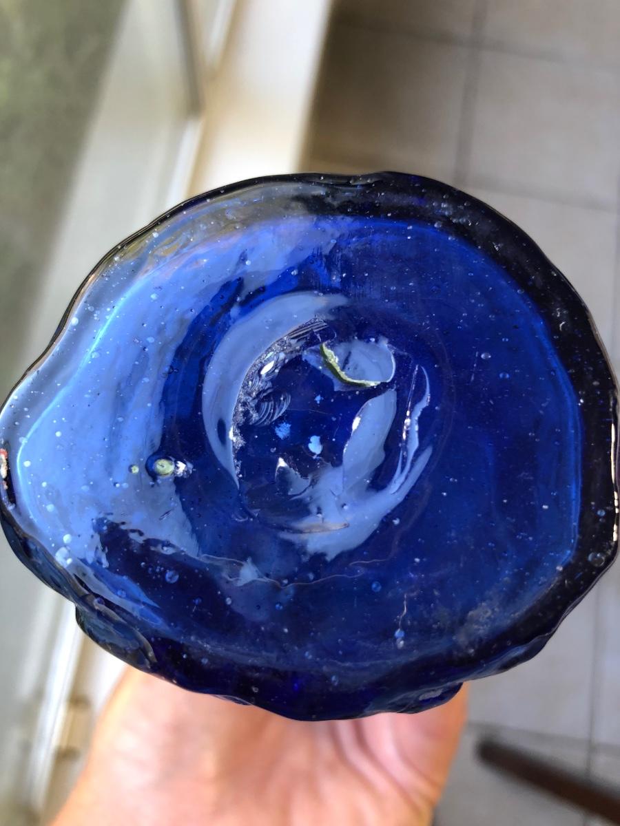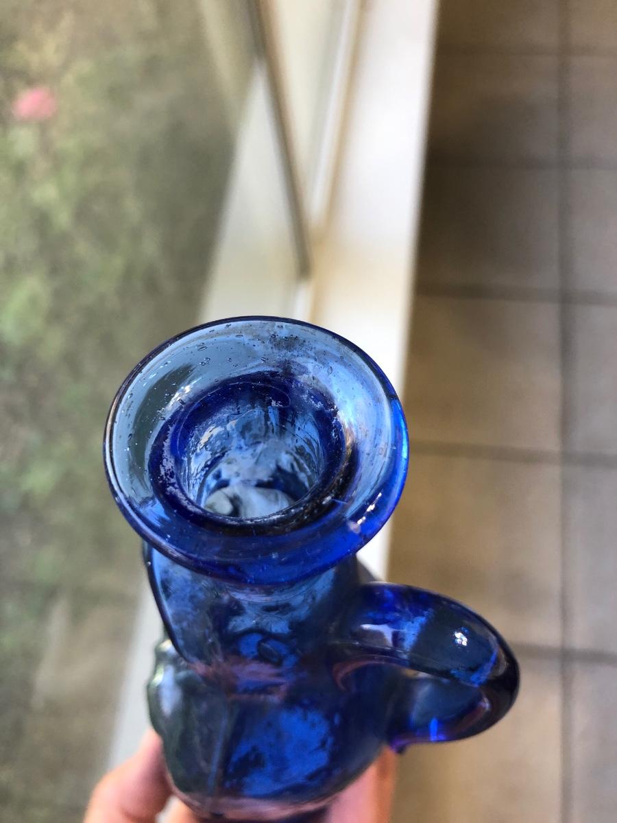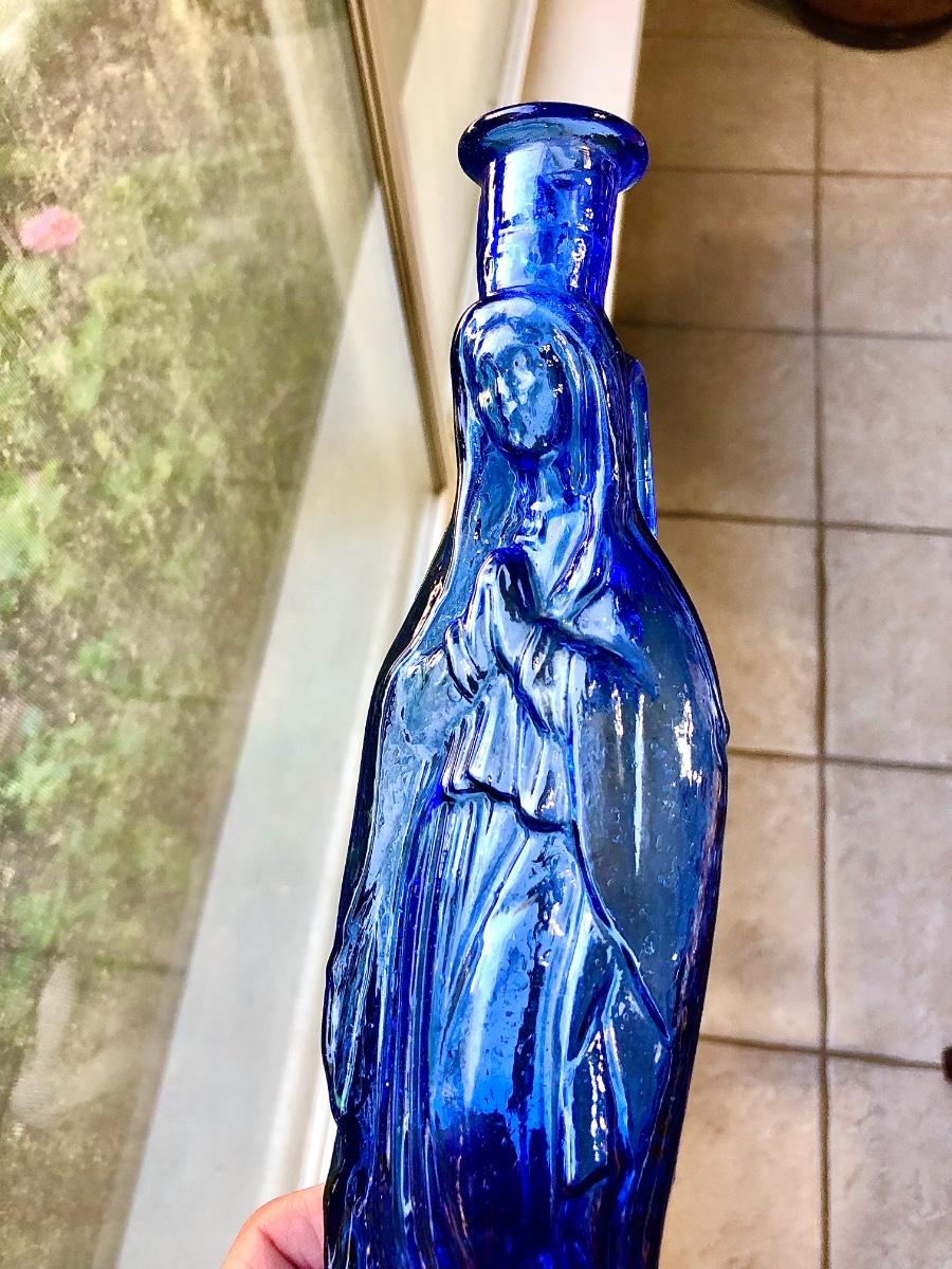 Lady of Guadalupe Cobalt blue holy water bottle.