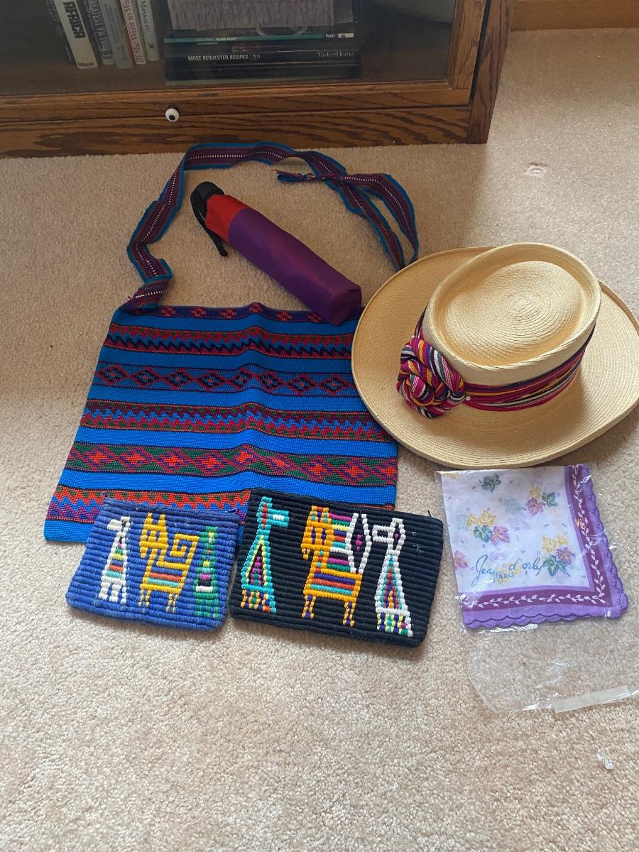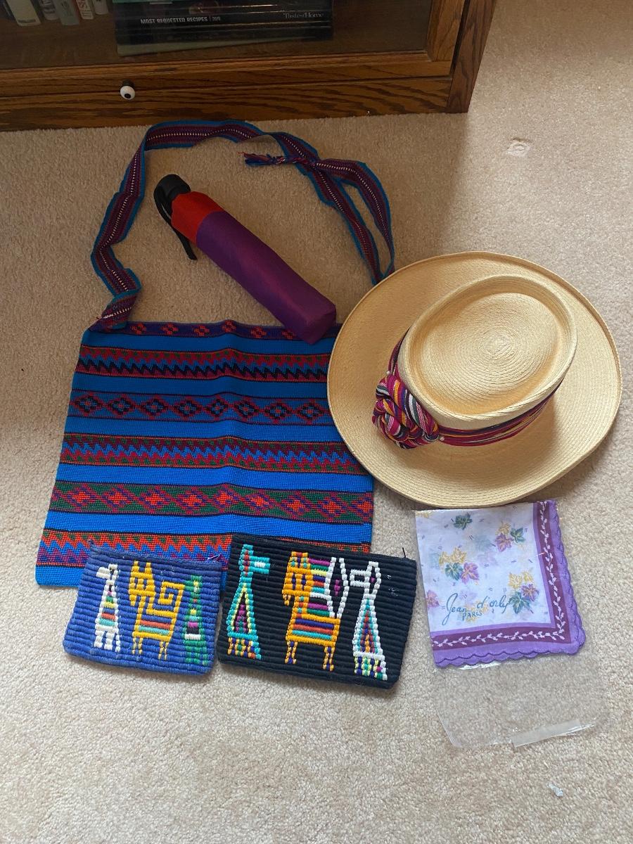 LADYS HAT, HAND BAG, UMBRELLA, COIN PURSES/MAKE-UP BAGS