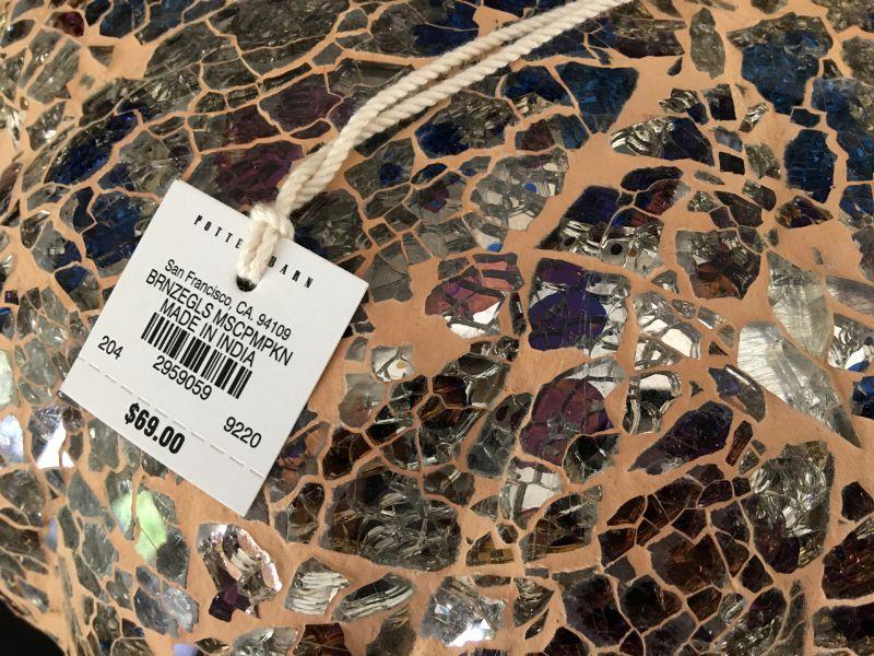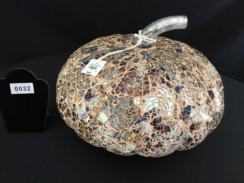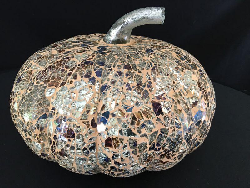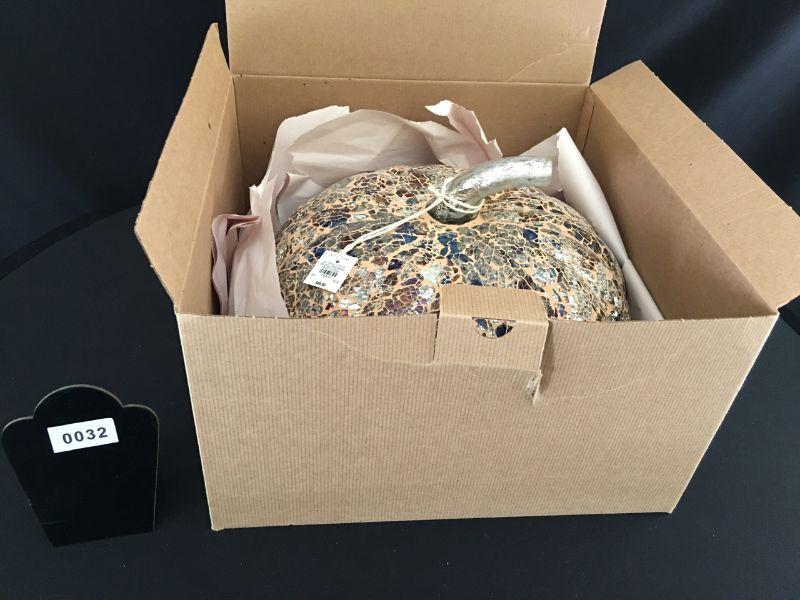 Large Glass Mosaic Pumpkin New In Box with tags. 12" w Item#32