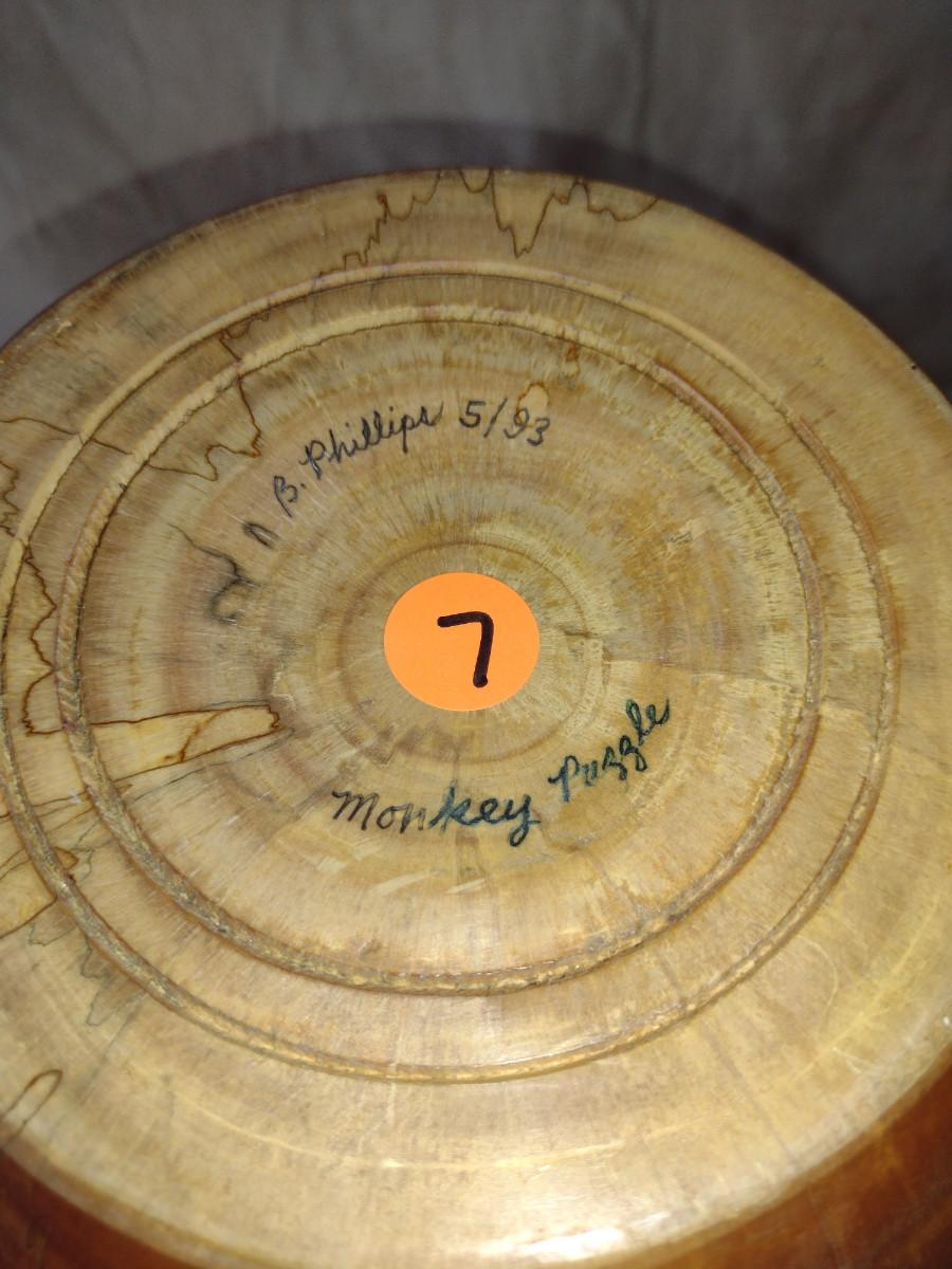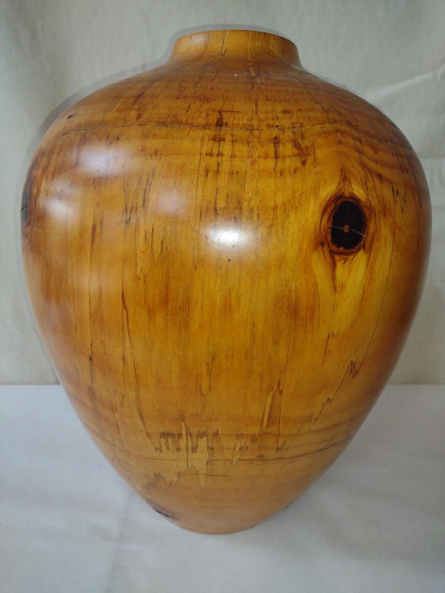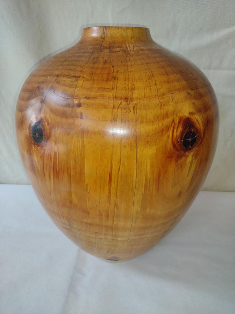 Large, Hand Crafted, Turned Wood Vase by Bobby Phillips- Monkey Puzzle Wood (#7). Item measures approx 18" tall.
