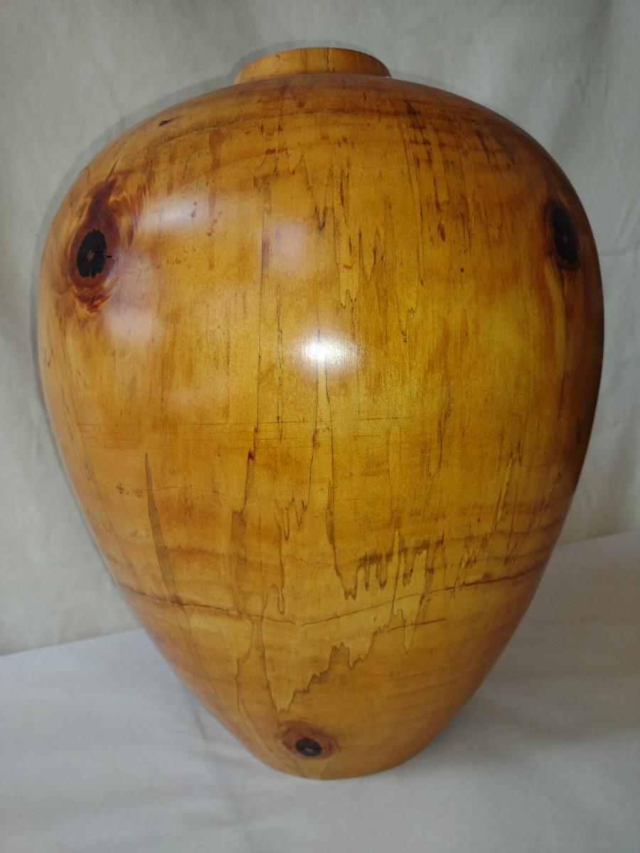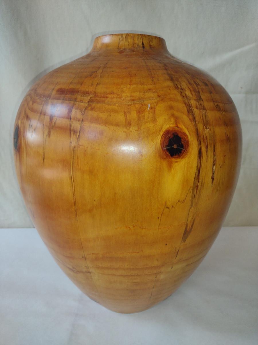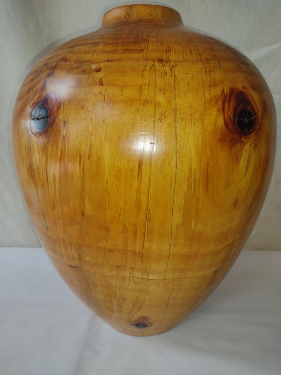 Large, Hand Crafted, Turned Wood Vase by Bobby Phillips- Monkey Puzzle Wood (#7). Item measures approx 18" tall.