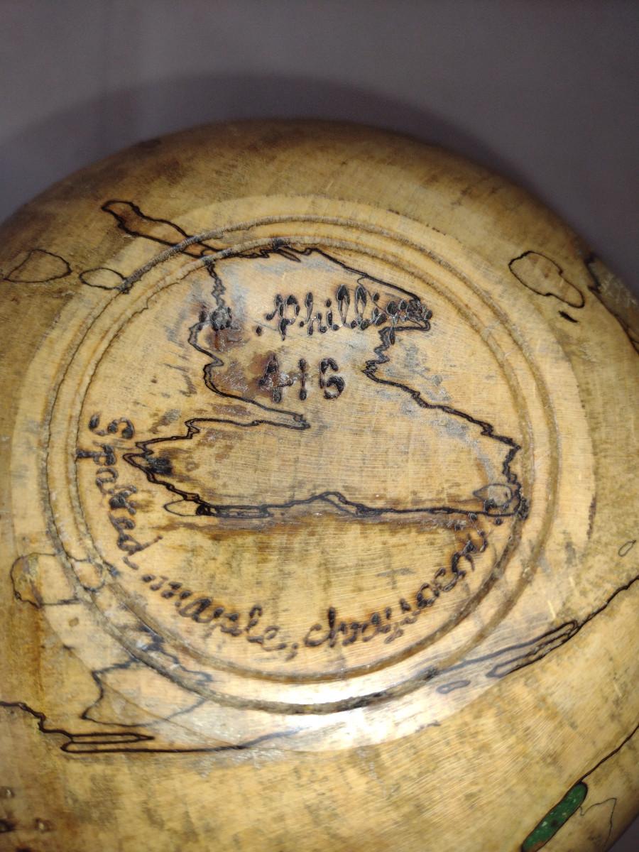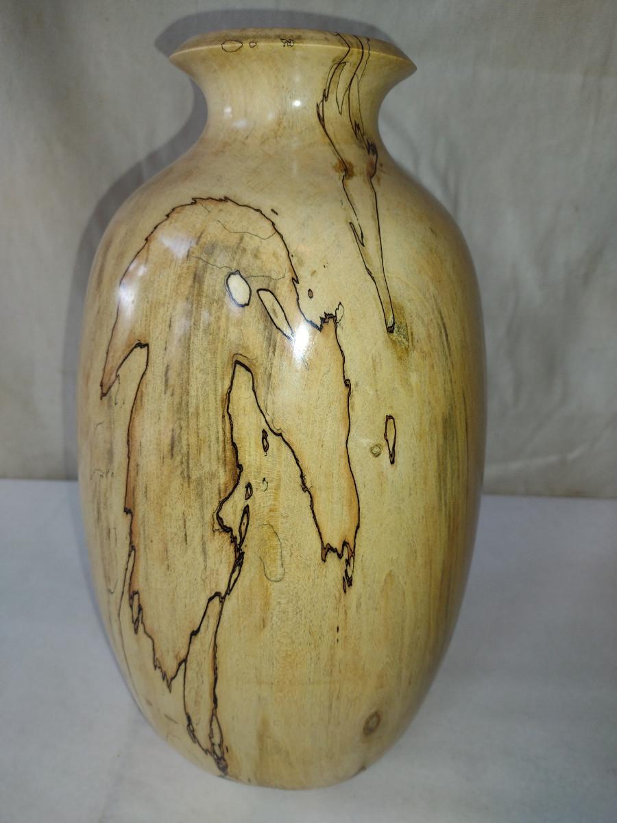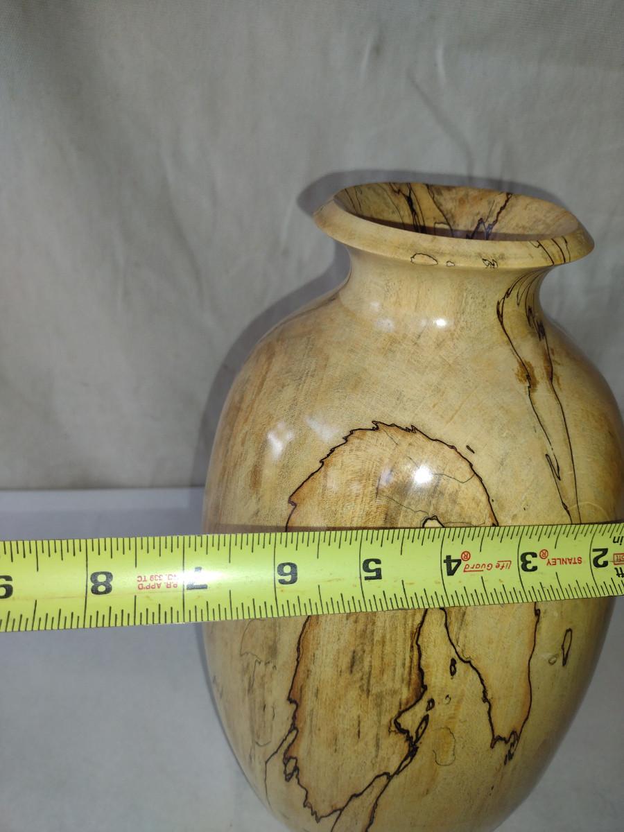 Large, Hand Crafted, Turned Wood Vase by Bobby Phillips- Spalted Maple and Chrysocolla (#8). Item measures approx 13 3/4" tall.