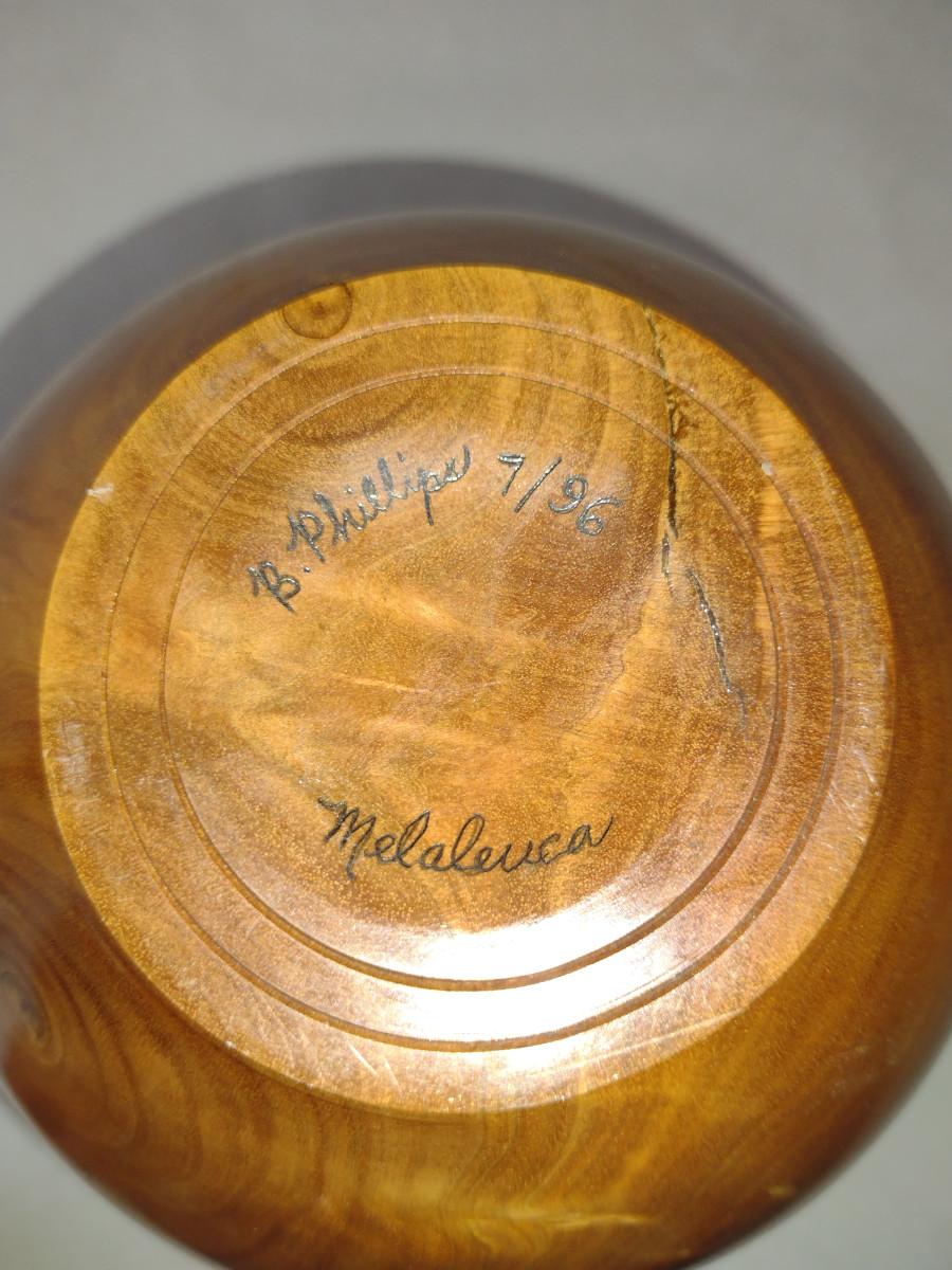 Large, Hand Crafted, Turned Wood Vase by Bobby Phillips- Melaleuca and Stone Orb (#10).