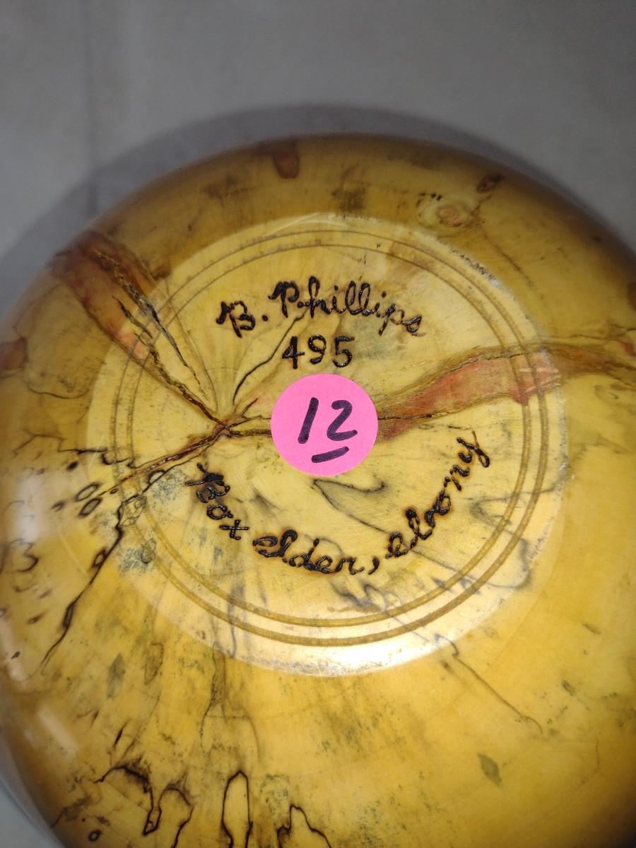 Large, Hand Crafted, Turned Wood Vase by Bobby Phillips- Box Elder and Ebony (#12). Item measures approx 14" tall.