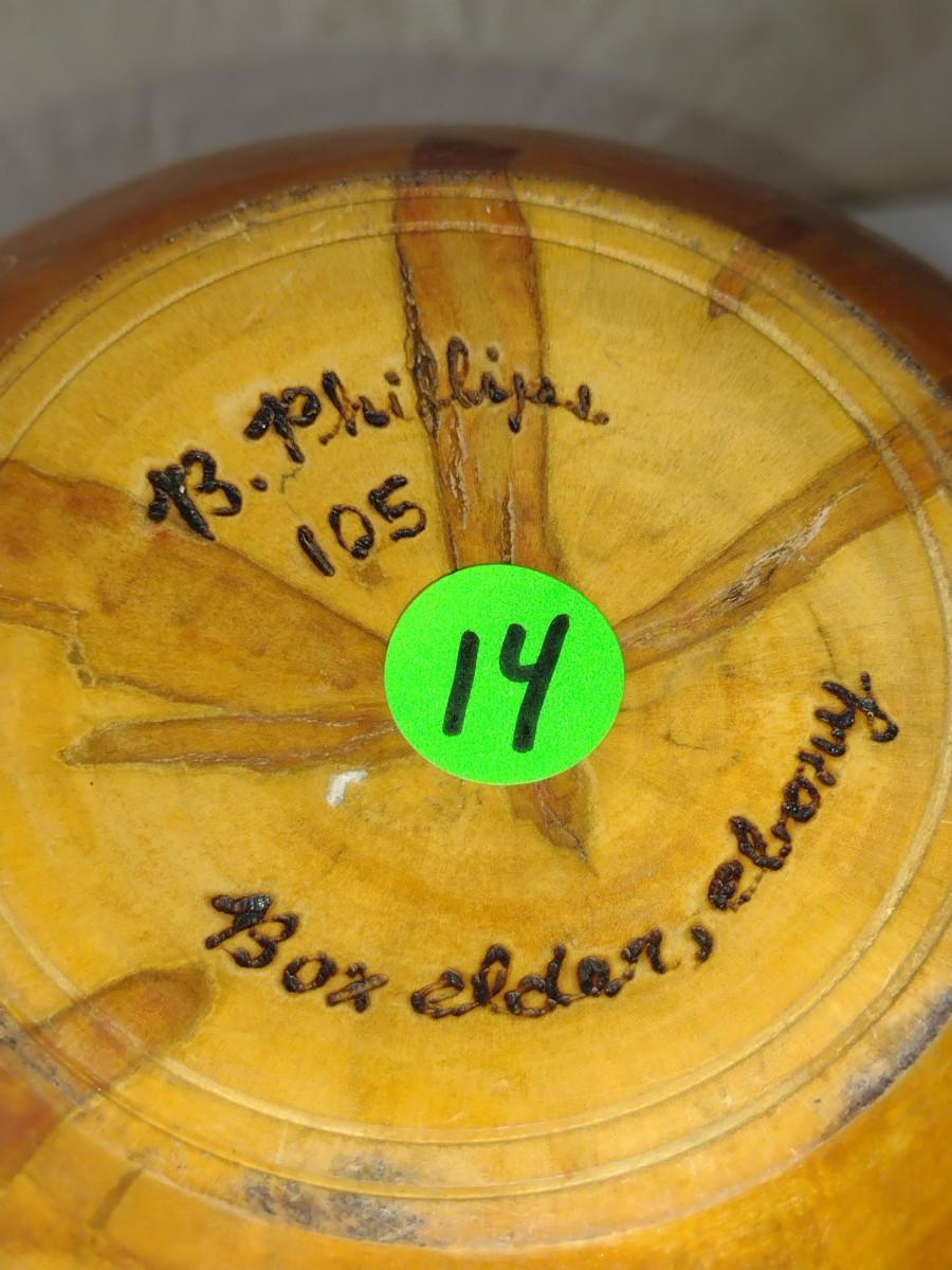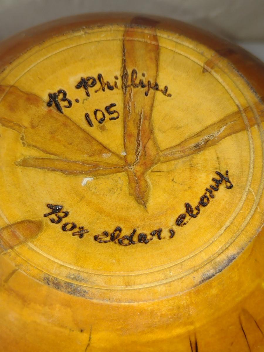 Large, Hand Crafted, Turned Wood Vase by Bobby Phillips- Box Elder and Ebony (#14). Item measures approx 19 3/4" tall.