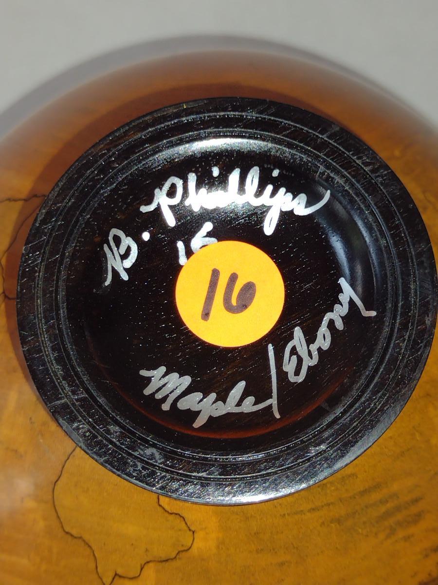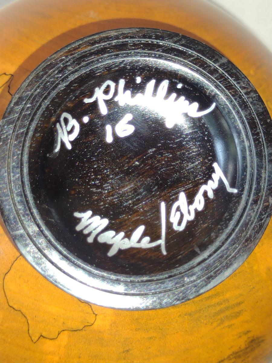 Large, Hand Crafted, Turned Wood Vase by Bobby Phillips- Maple and Ebony (#16). Item measures approx 10" tall.