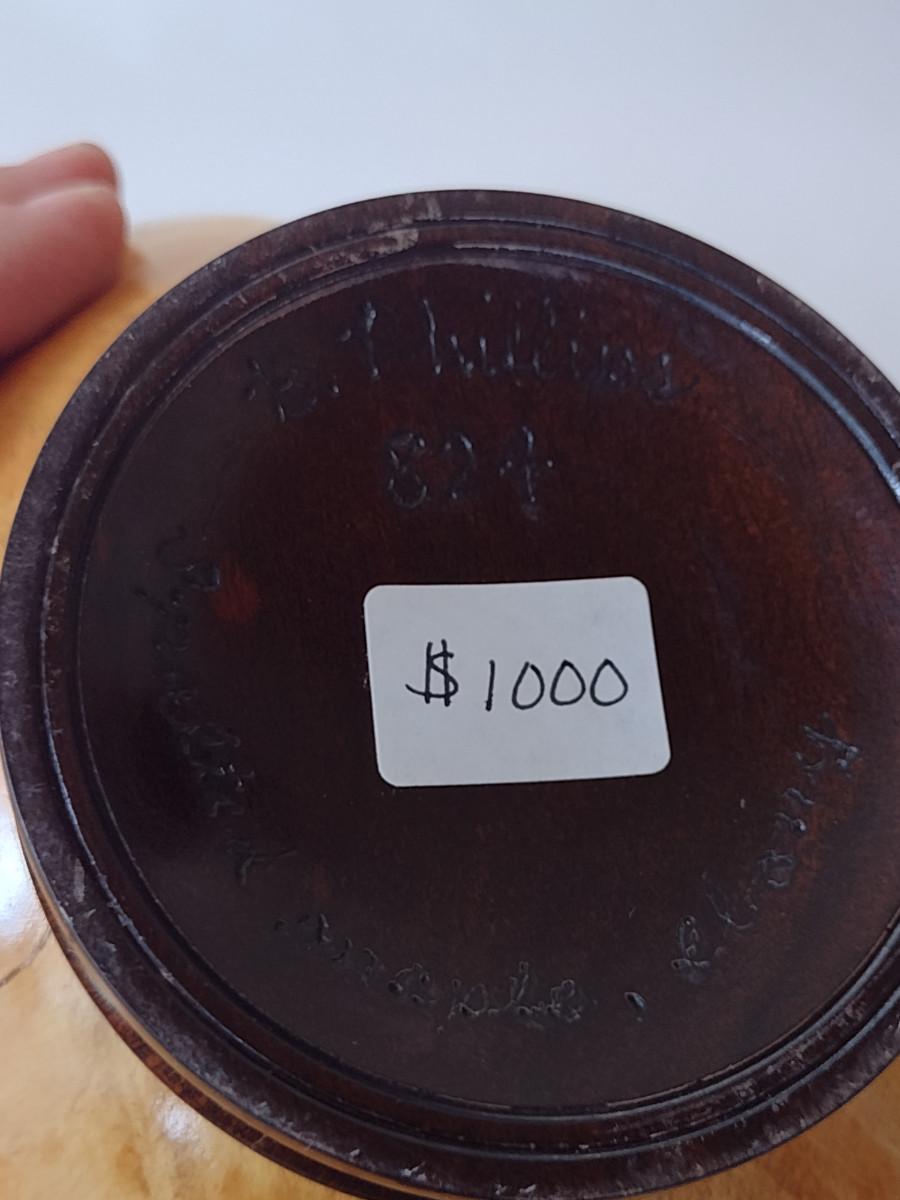 Large, Hand Crafted, Turned Wood Vase by Bobby Phillips- Spalted Maple and Ebony (#17). Item measures approx 19 1/2" tall.