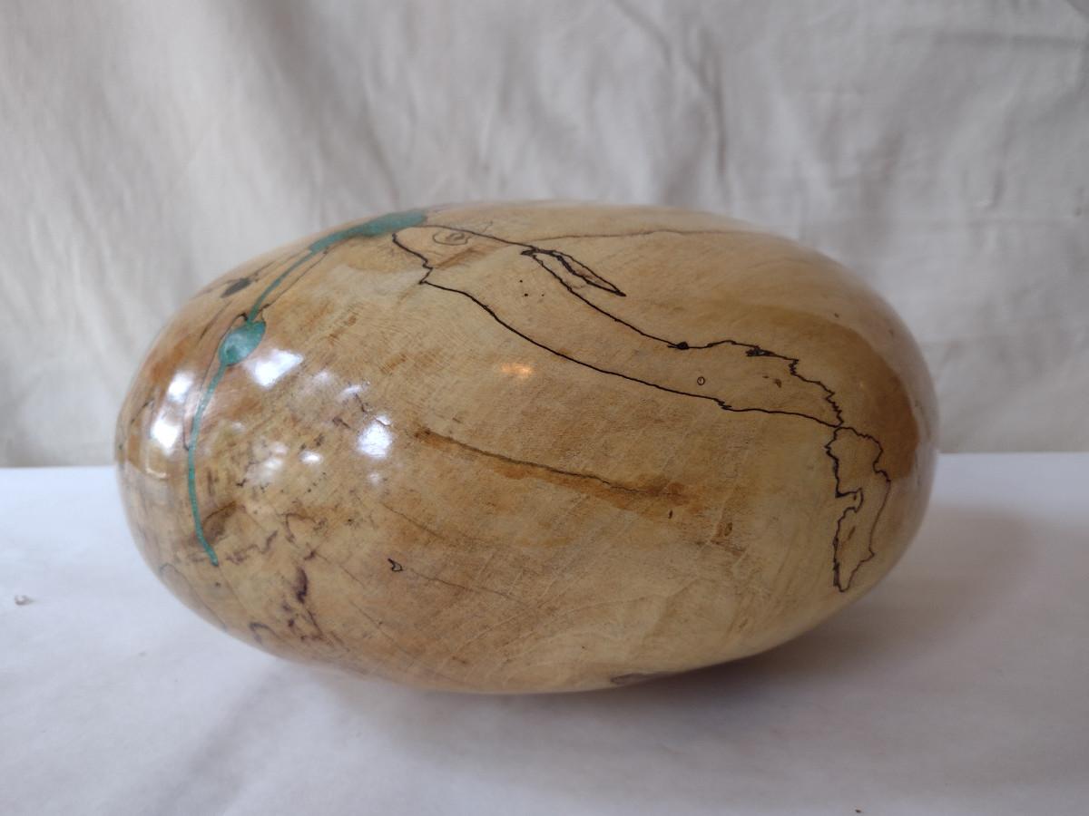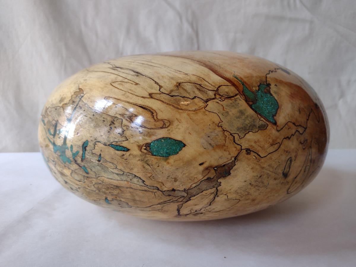 Large, Hand Crafted, Turned Wood Vase by Bobby Phillips- Spalted Maple and Turquoise (#18).
