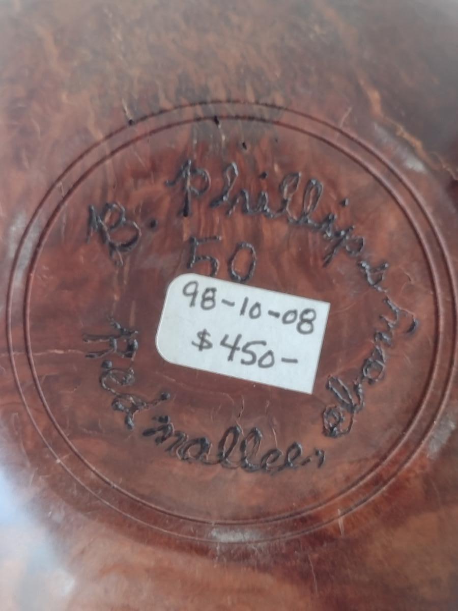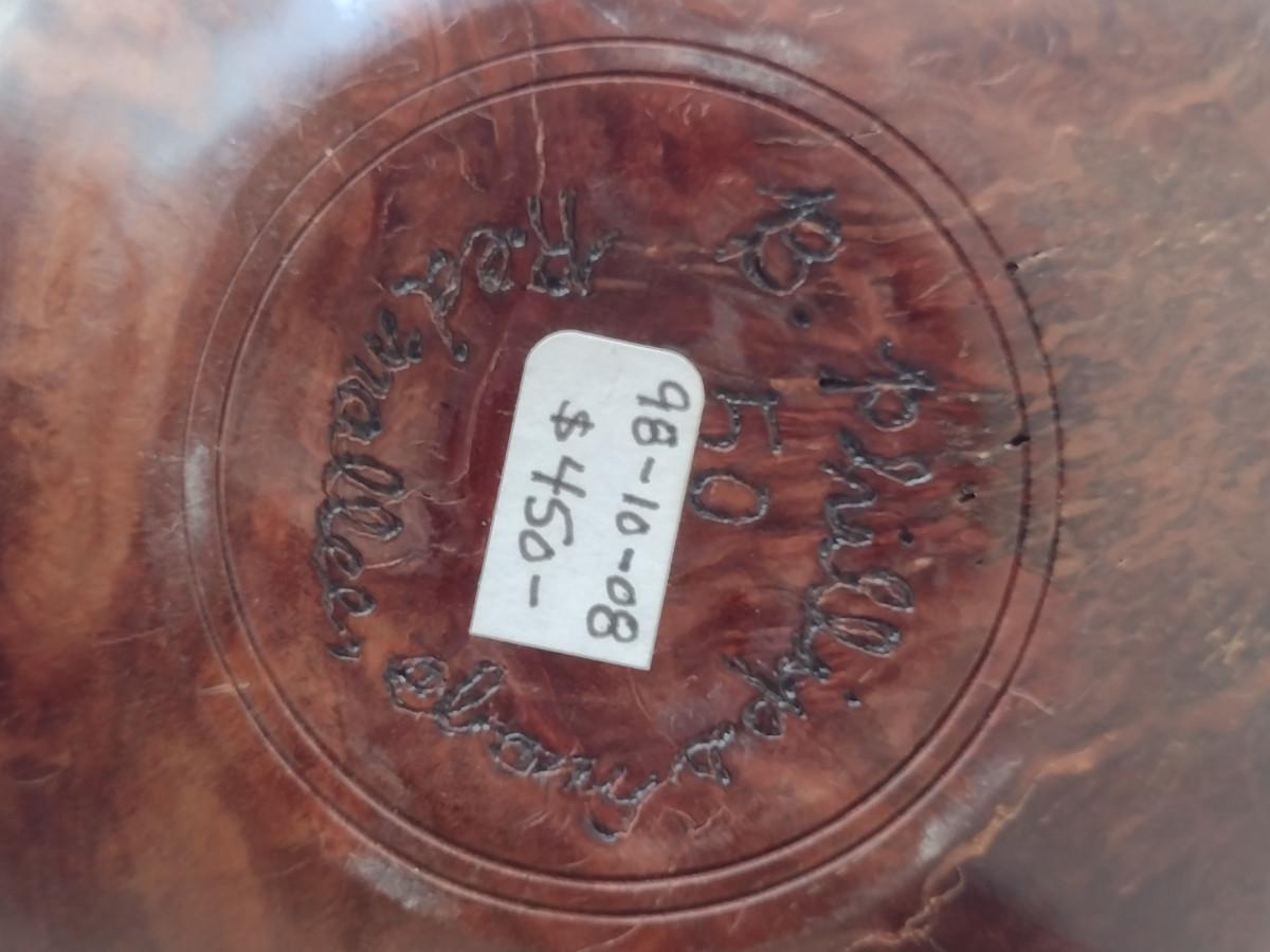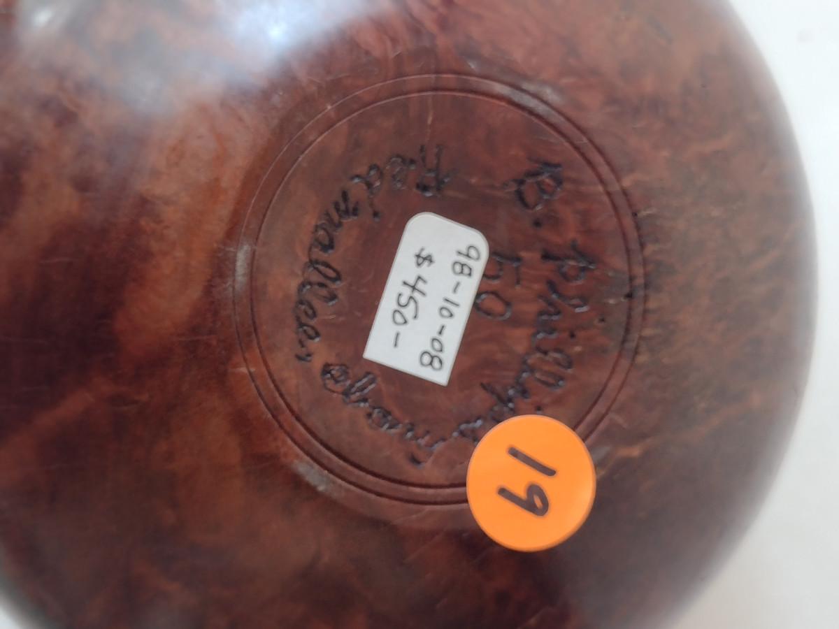 Large, Hand Crafted, Turned Wood Vase by Bobby Phillips- Red Mallee and Ebony (#19). Item measures approx 9 1/4" tall.