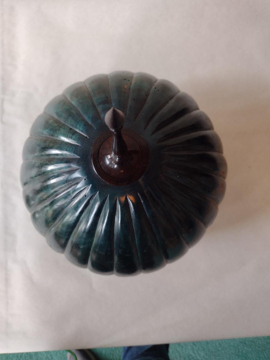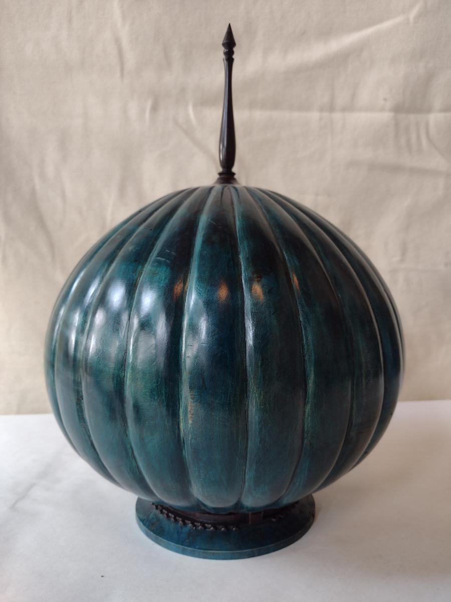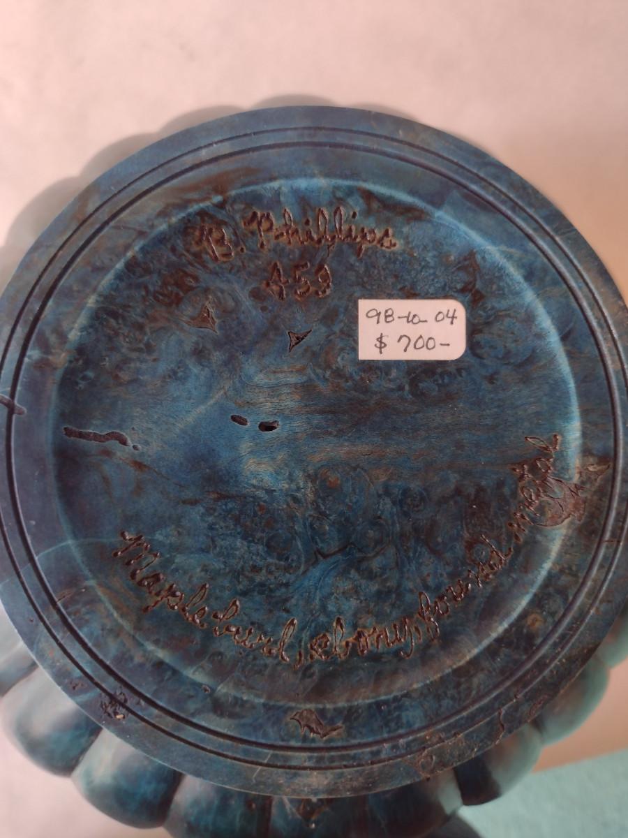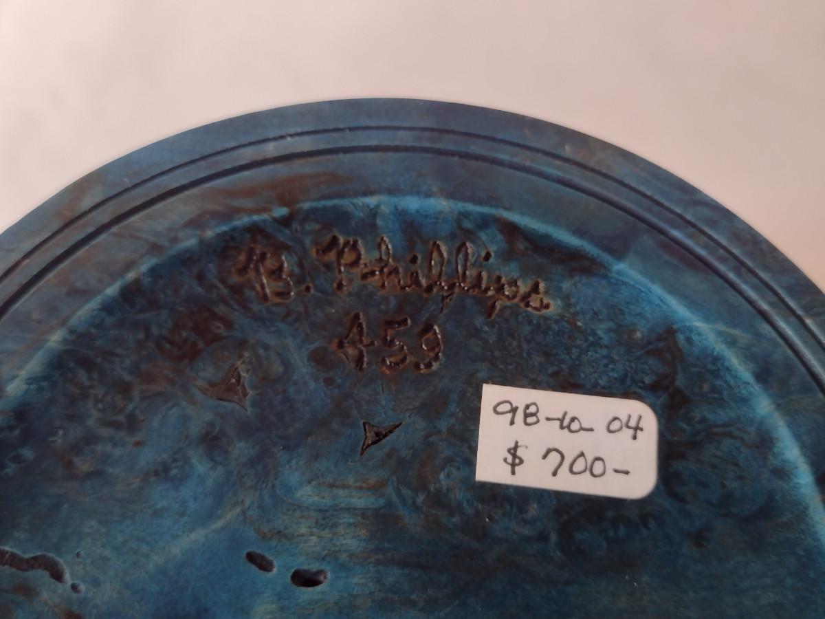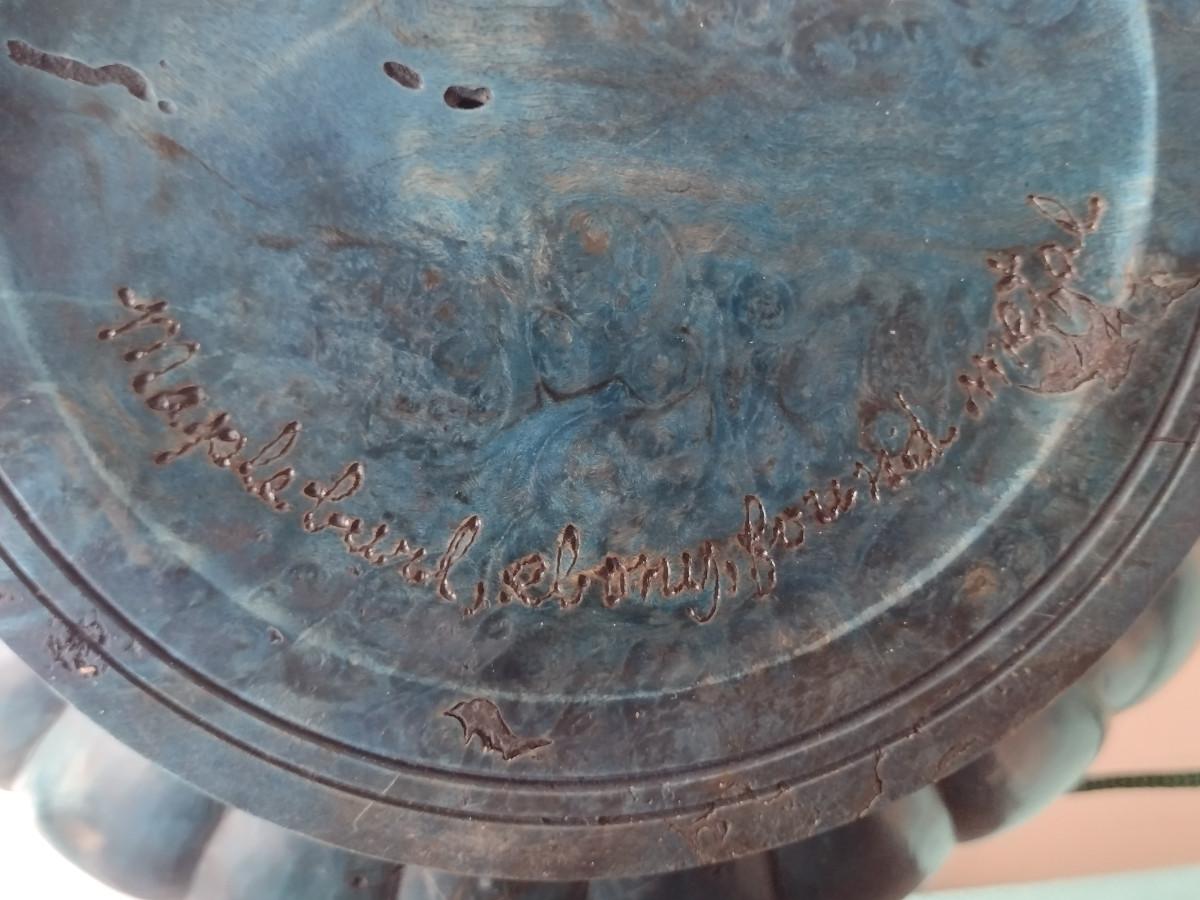 Large, Hand Crafted, Turned Wood Vase by Bobby Phillips- Maple Burl, Ebony, and Found Metal (#20). Item measures approx 13" tall.