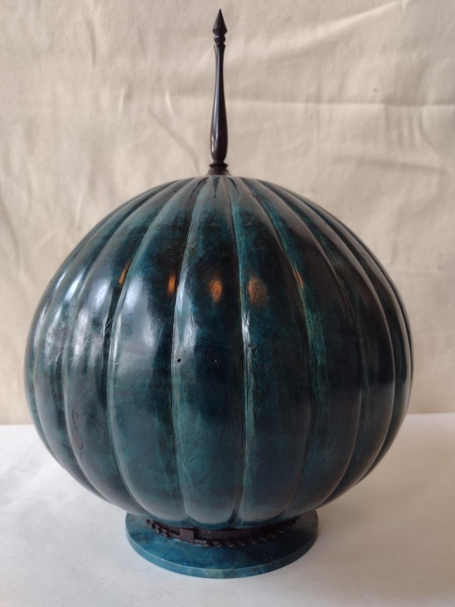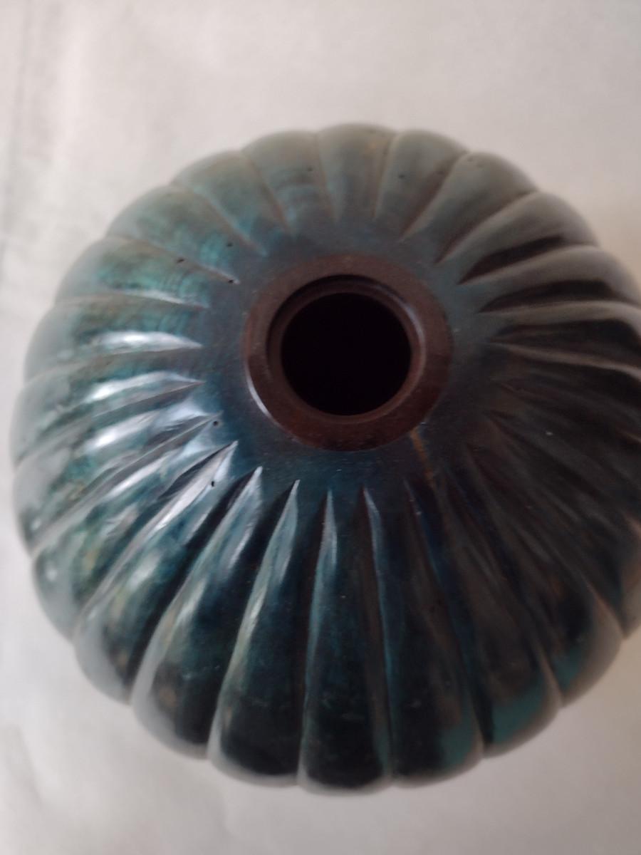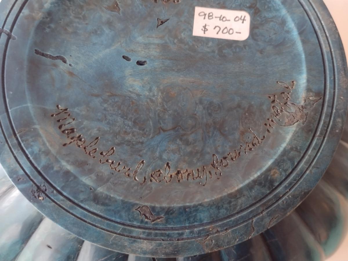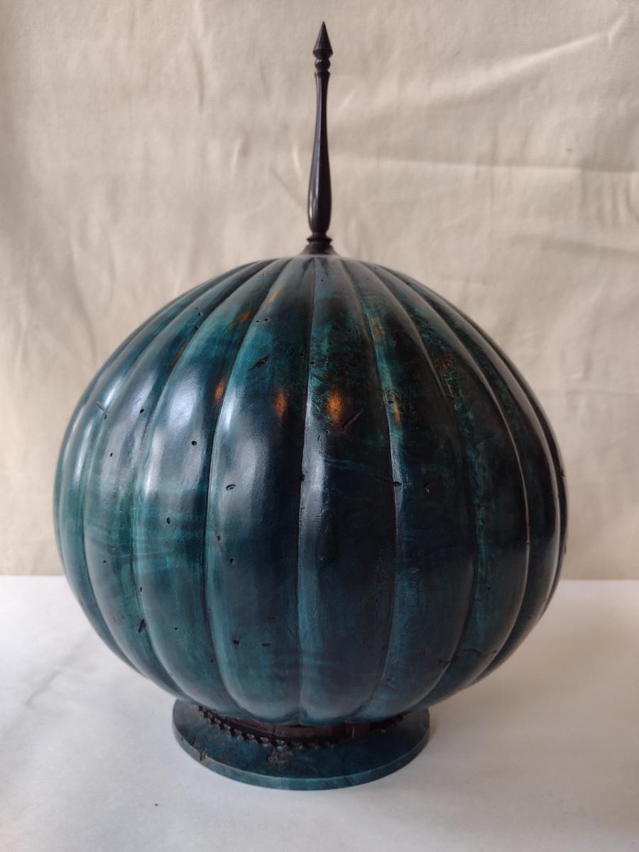 Large, Hand Crafted, Turned Wood Vase by Bobby Phillips- Maple Burl, Ebony, and Found Metal (#20).