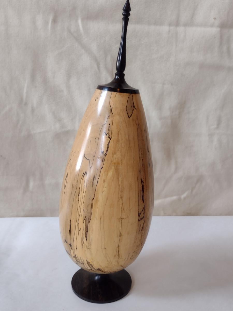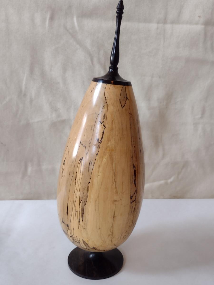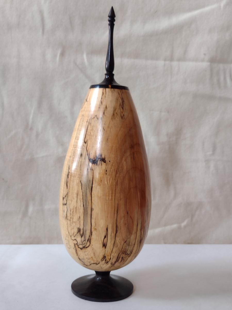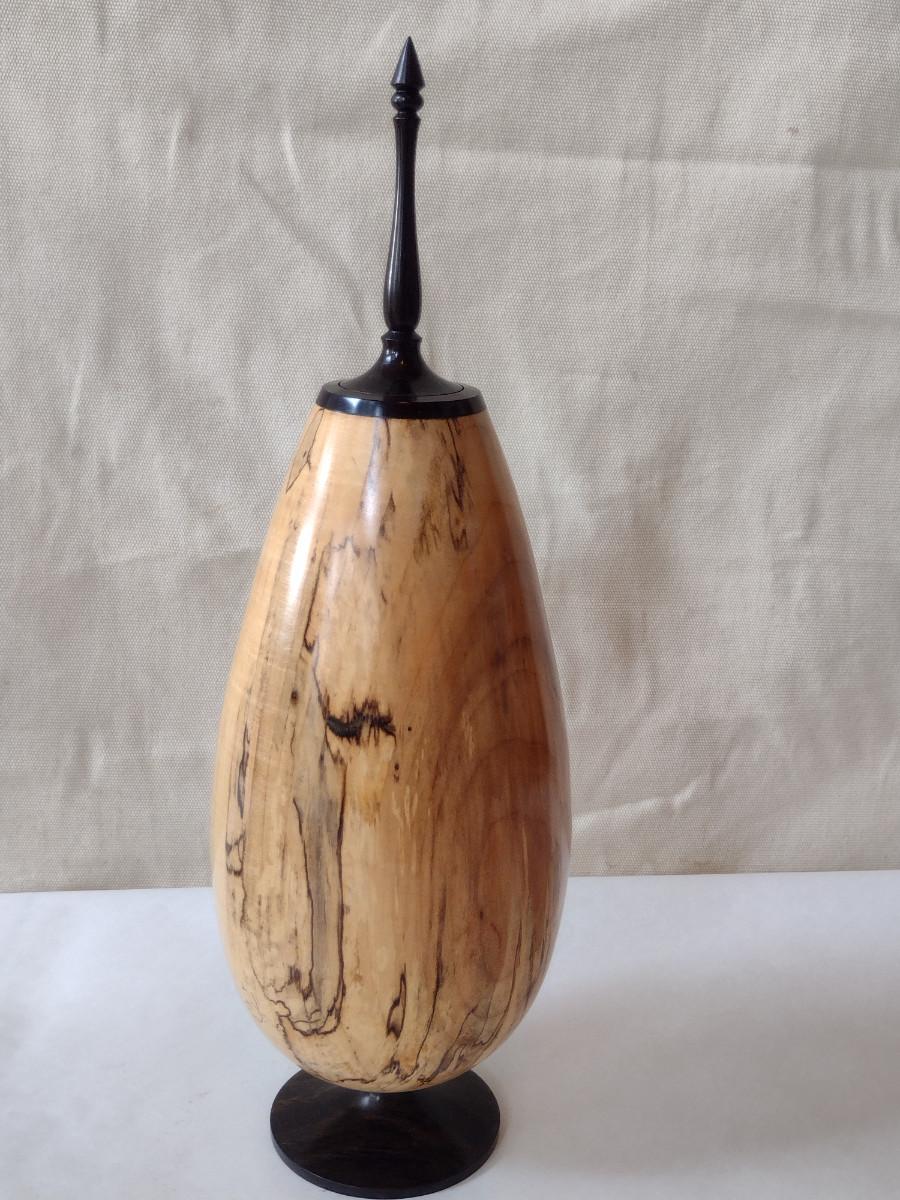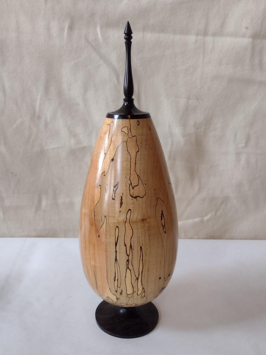 Large, Hand Crafted, Turned Wood Vase by Bobby Phillips- Spalted Maple and Ebony (#22).