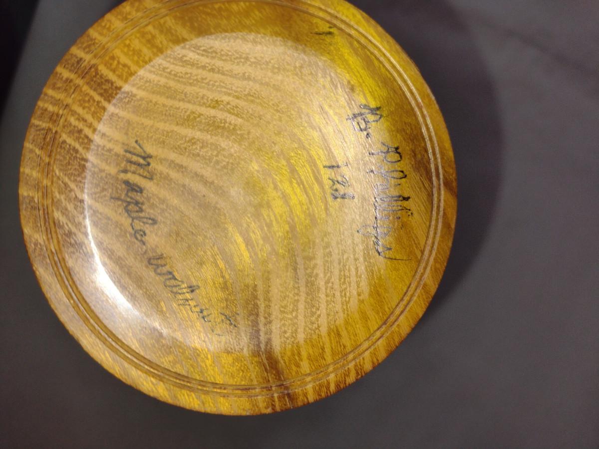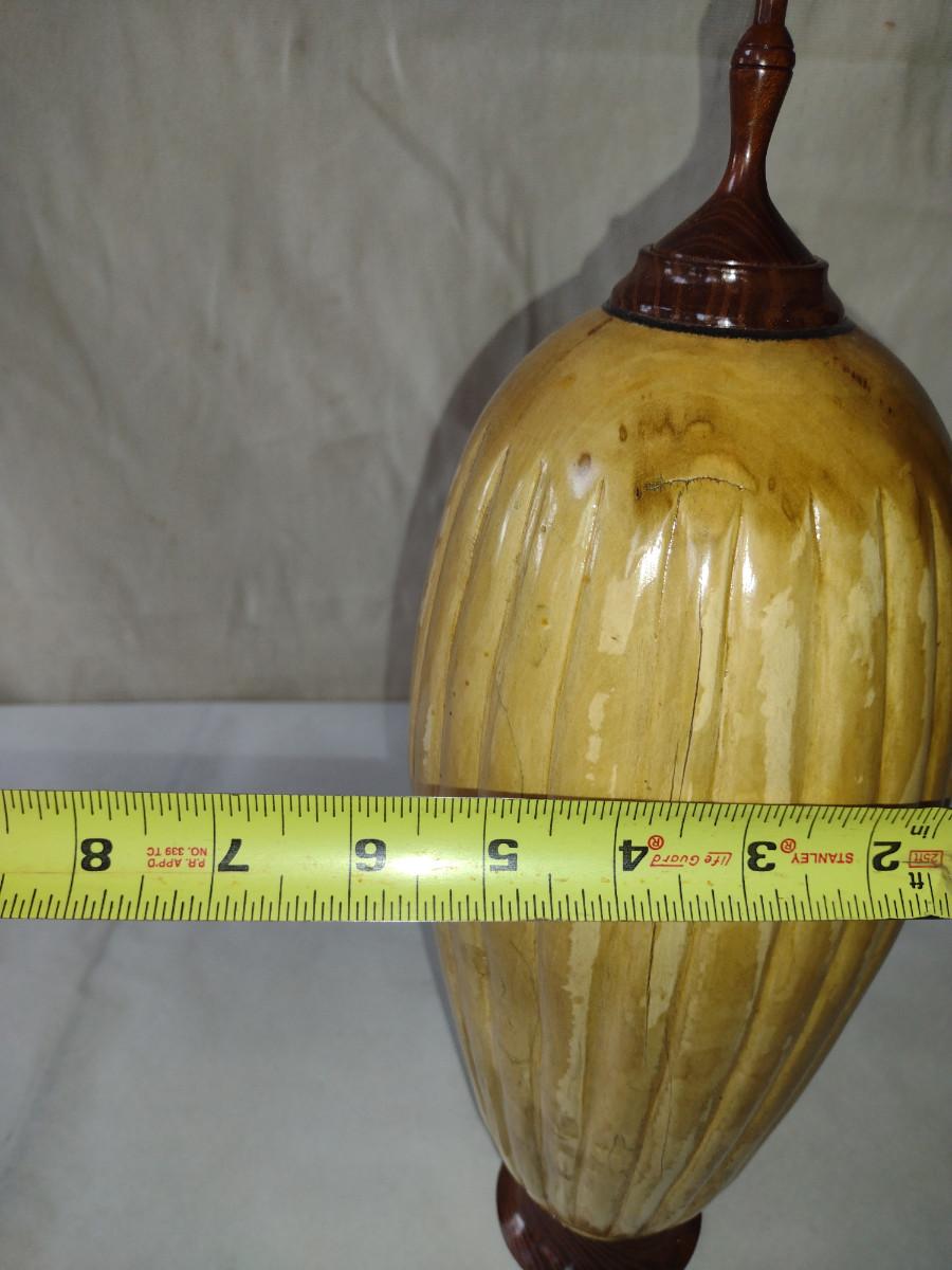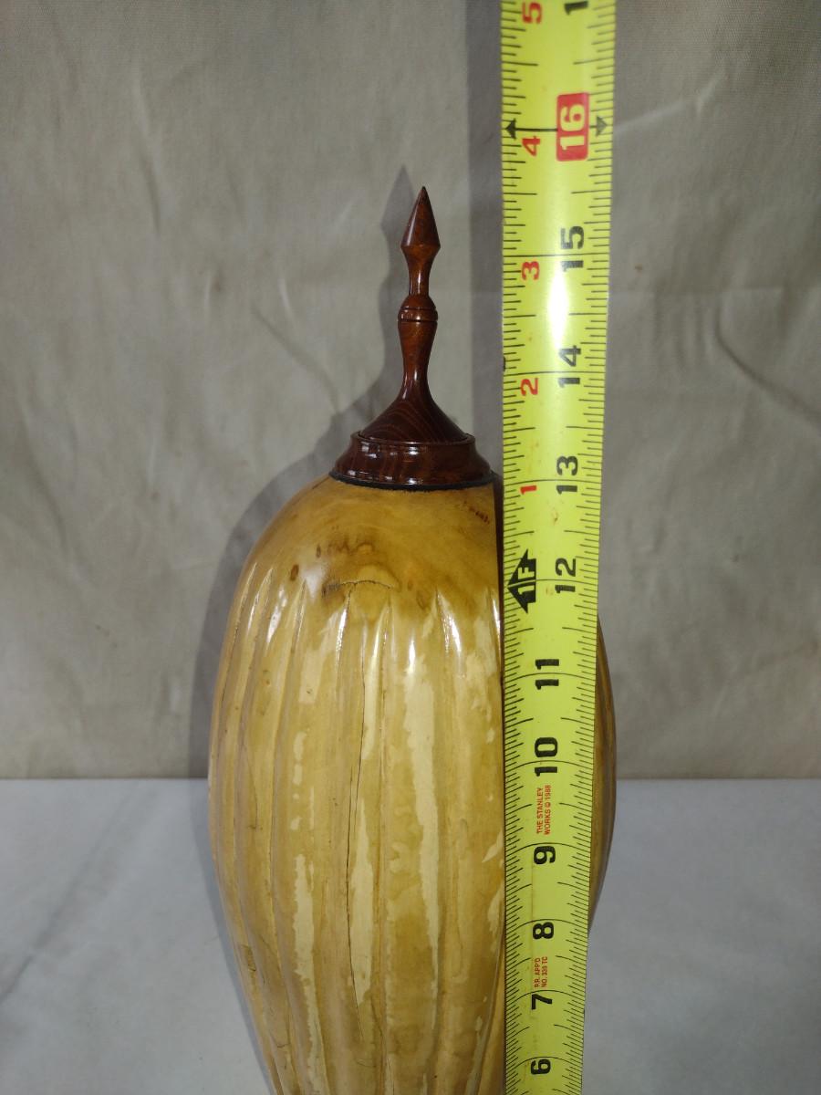Large, Hand Crafted, Turned Wood Vase by Bobby Phillips- Maple and Walnut (#25). Item measures approx 15 1/2" tall.