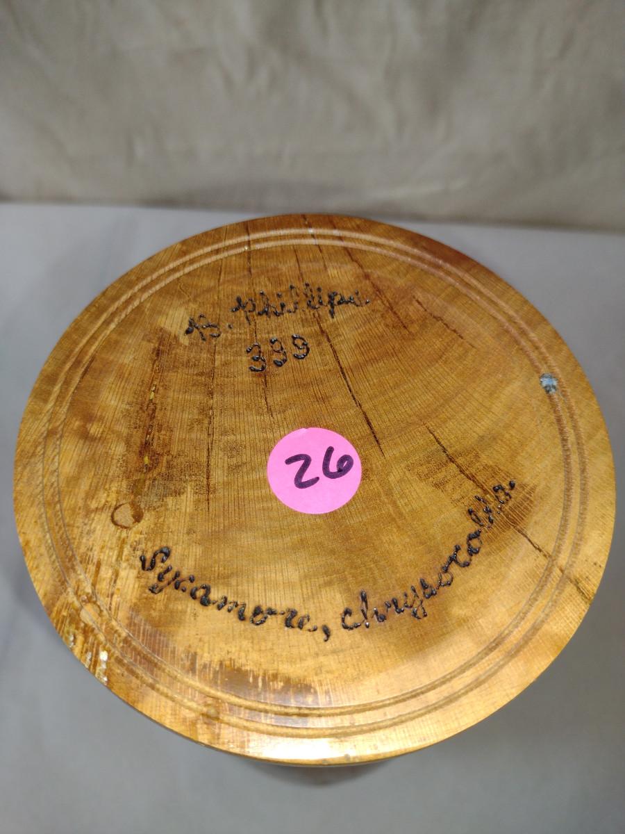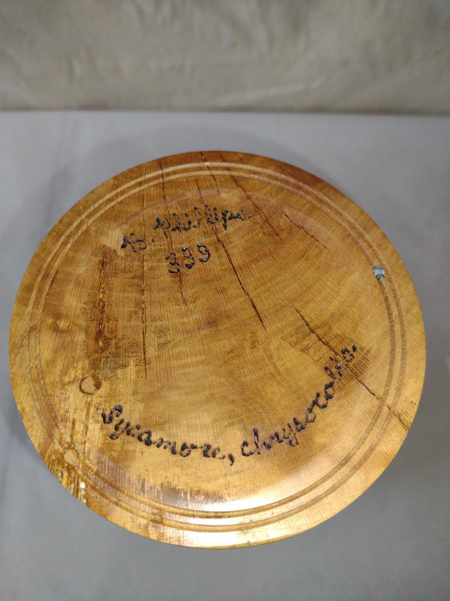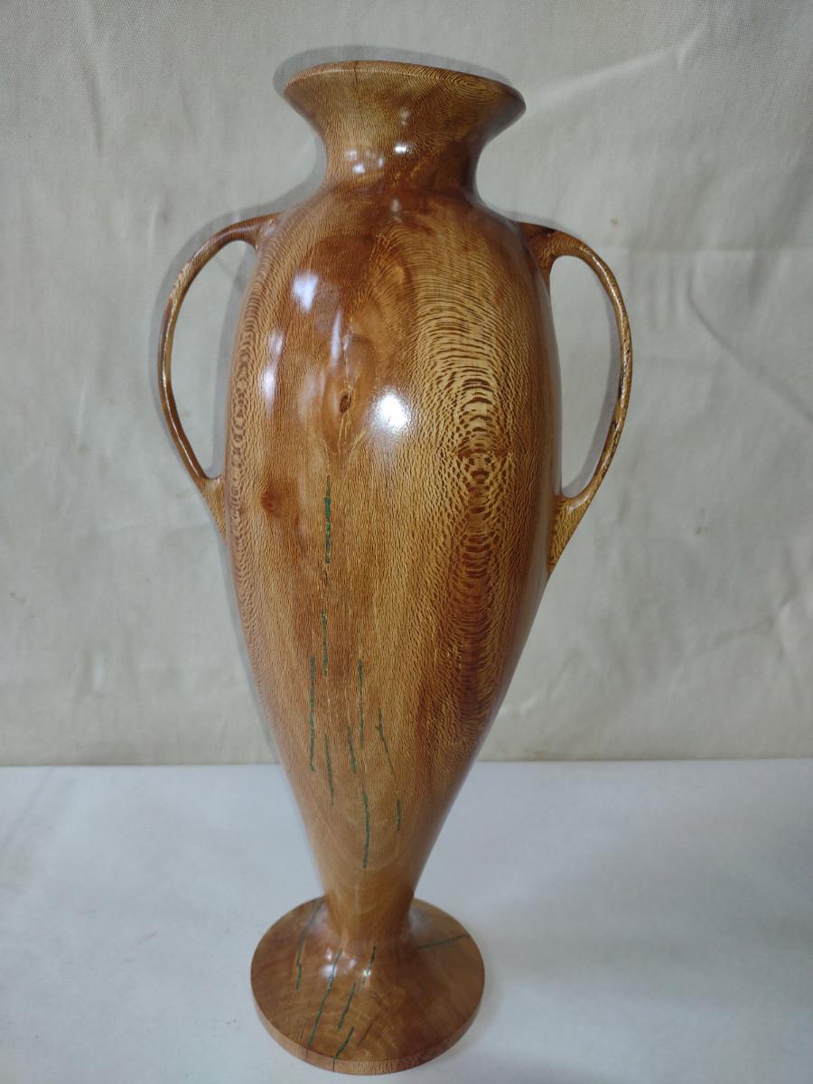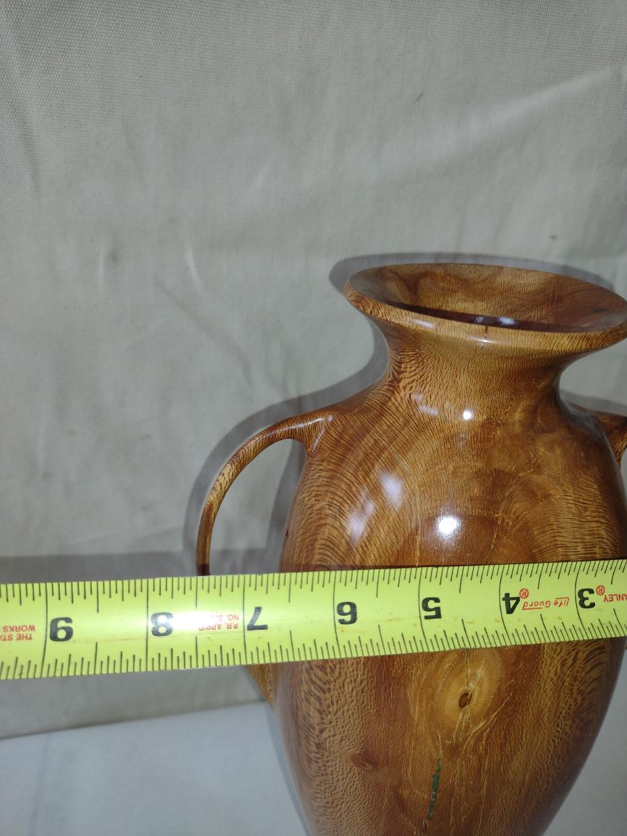 Large, Hand Crafted, Turned Wood Vase by Bobby Phillips- Sycamore and Chrysocolla (#26). Item measures approx 16 1/4" tall.
