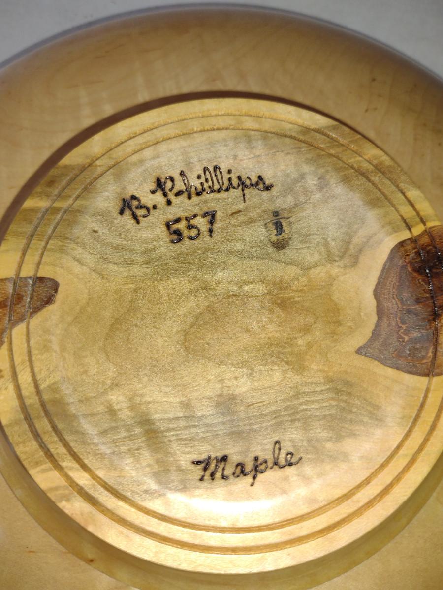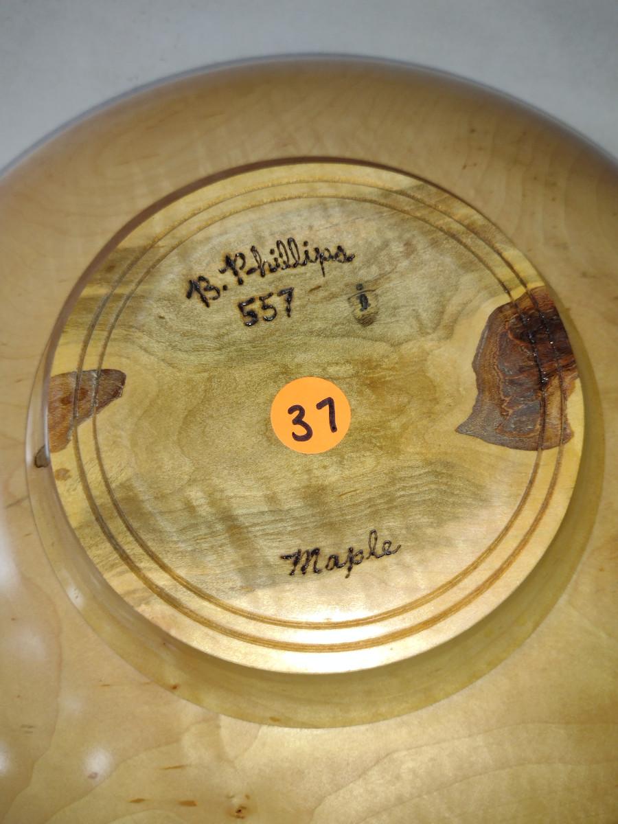 Large, Hand Crafted, Turned Wood Bowl by Bobby Phillips- Maple (#37). Item measures approx 14 1/4" in diameter.