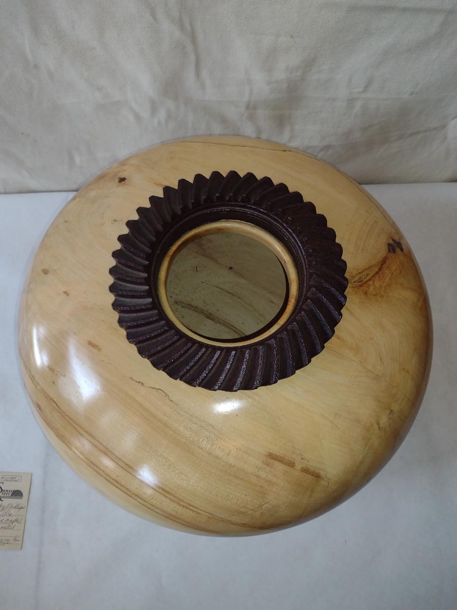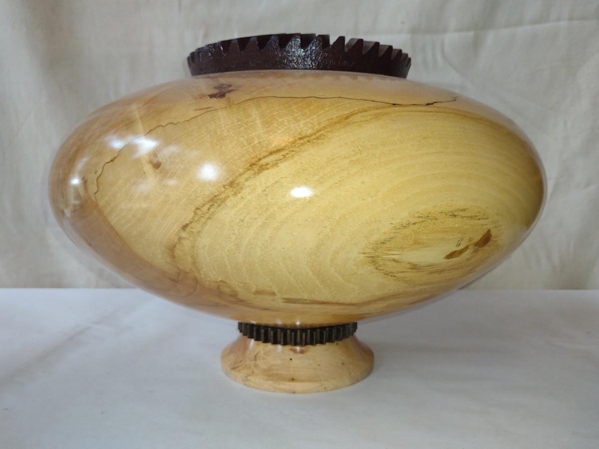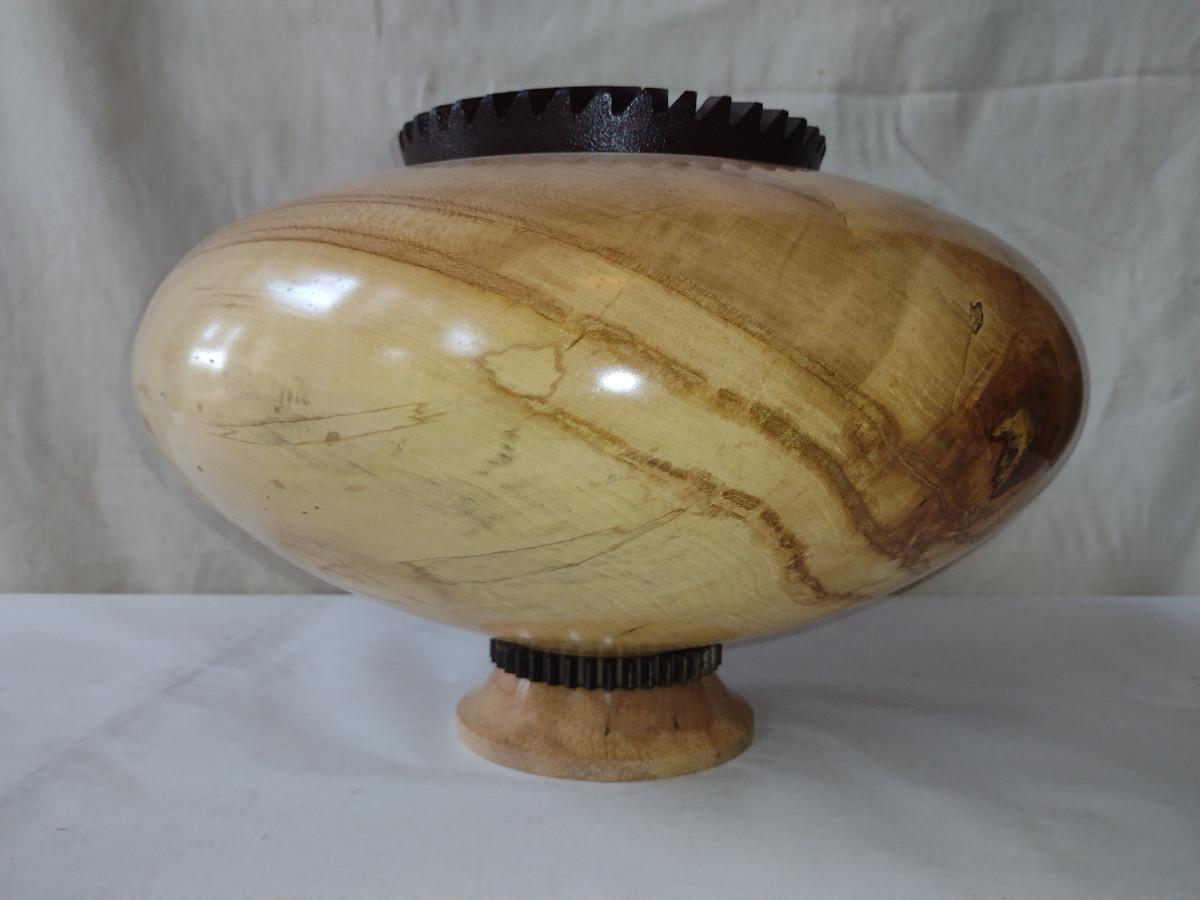 Large, Hand Crafted, Turned Wood Vase by Bobby Phillips-Spalted Maple and Found Metal (#40).