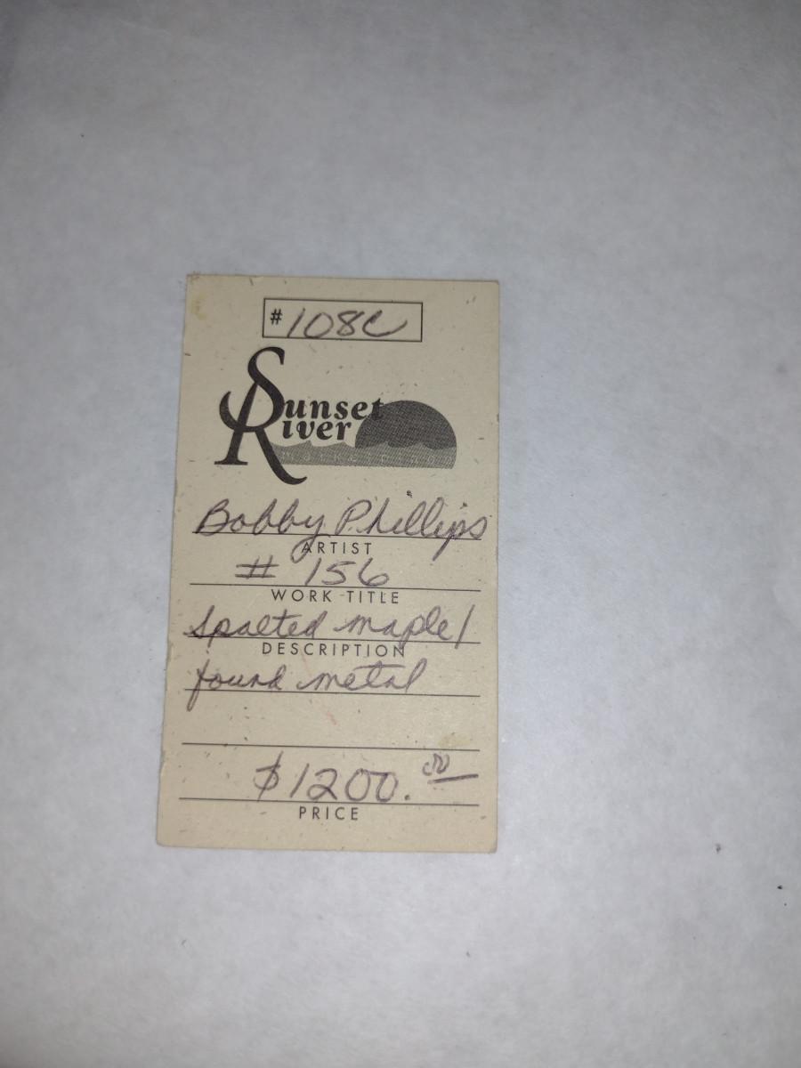 Large, Hand Crafted, Turned Wood Vase by Bobby Phillips- Spalted Maple and Found Metal (#40). Item measures approx 11" tall.