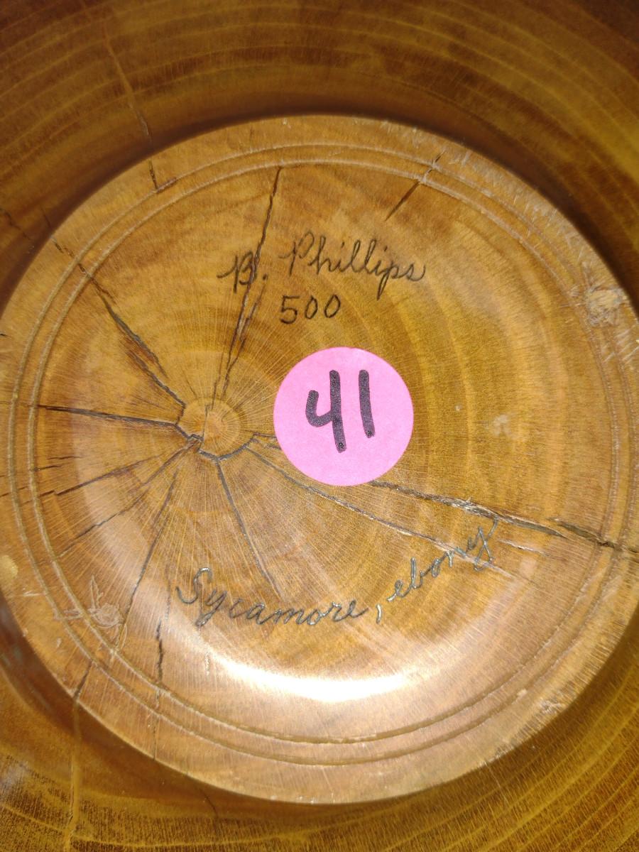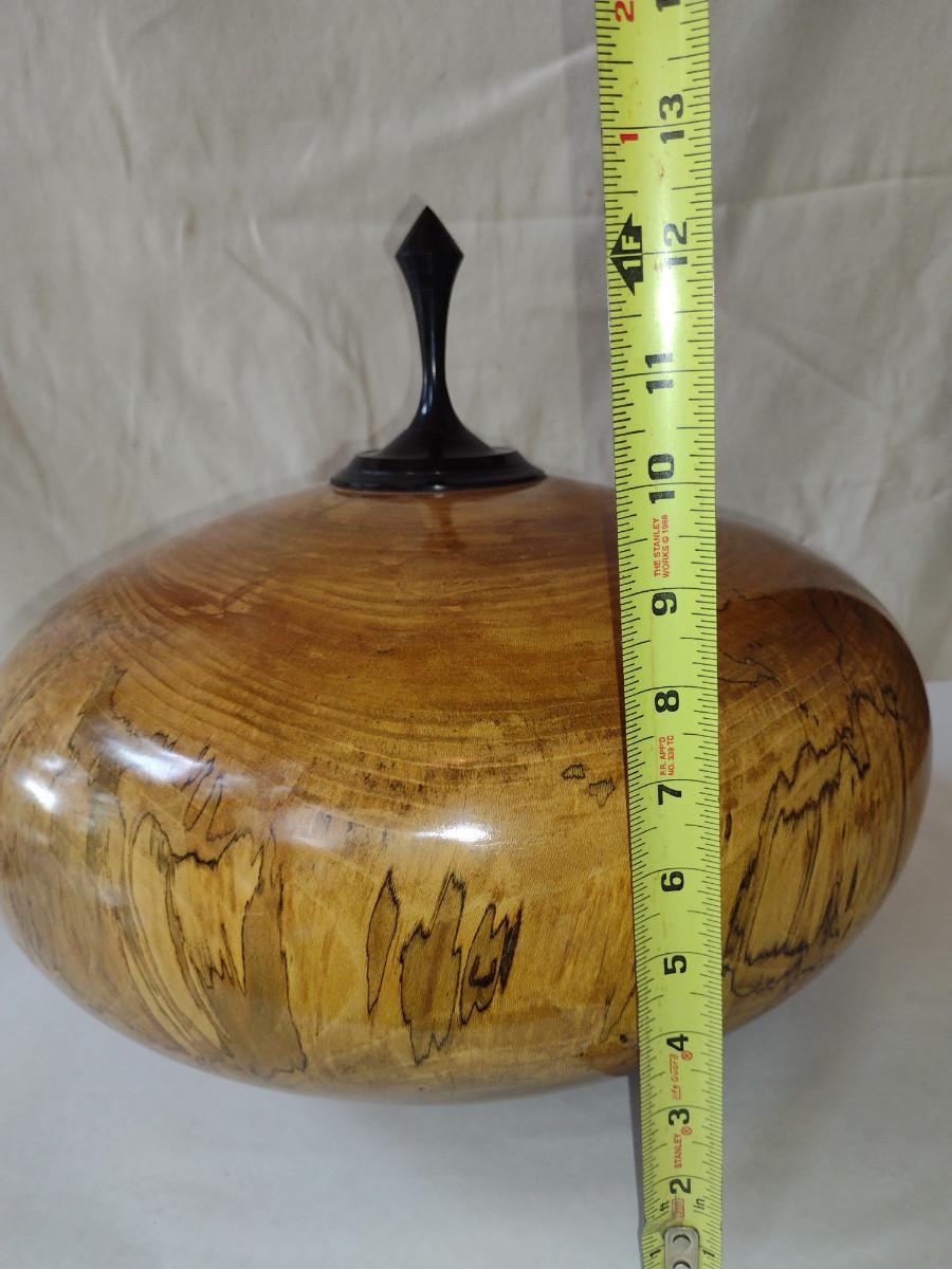 Large, Hand Crafted, Turned Wood Vase by Bobby Phillips- Sycamore and Ebony (#41). Item measures approx 12 1/2" tall.