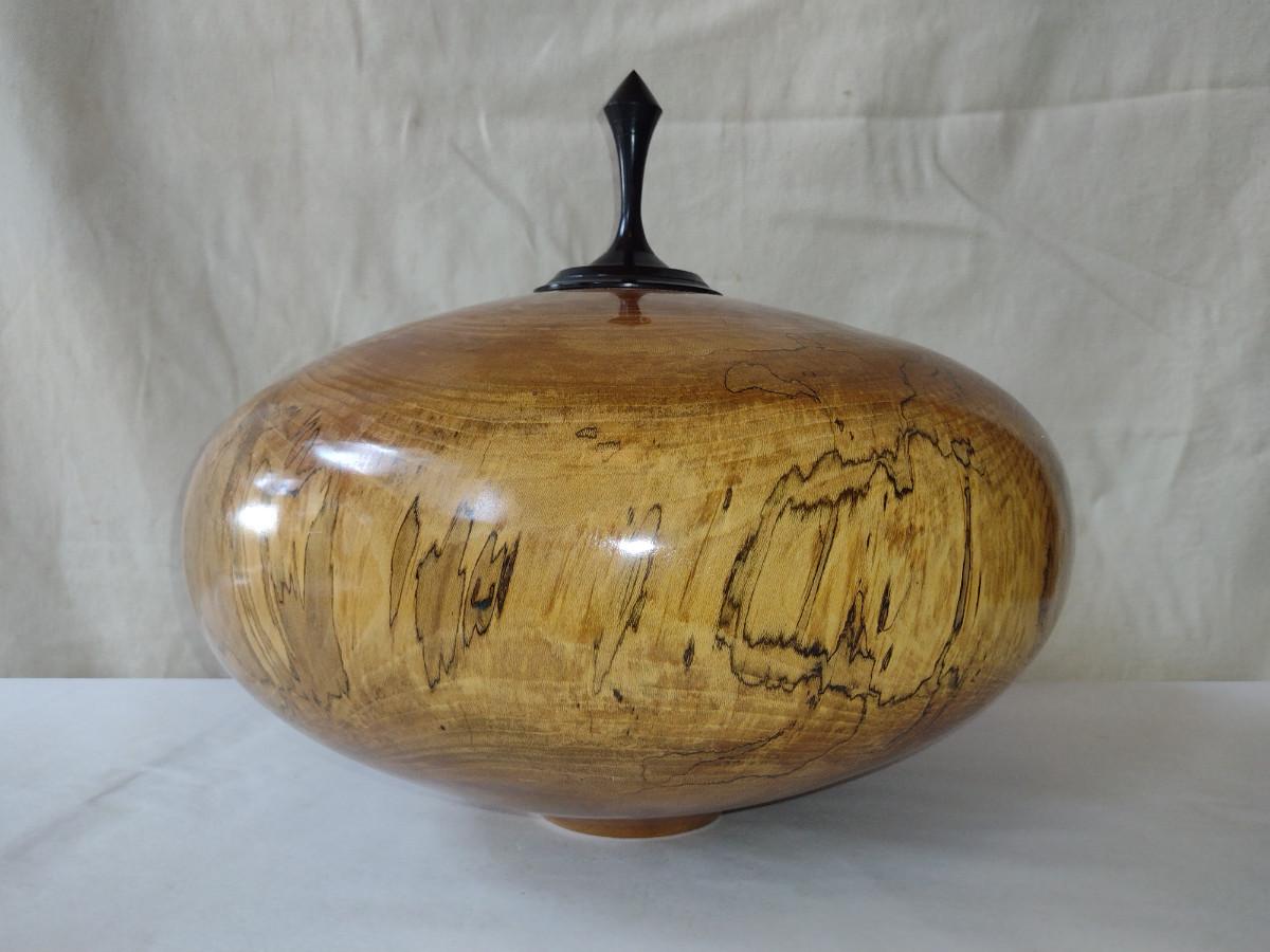 Large, Hand Crafted, Turned Wood Vase by Bobby Phillips- Sycamore and Ebony (#41).