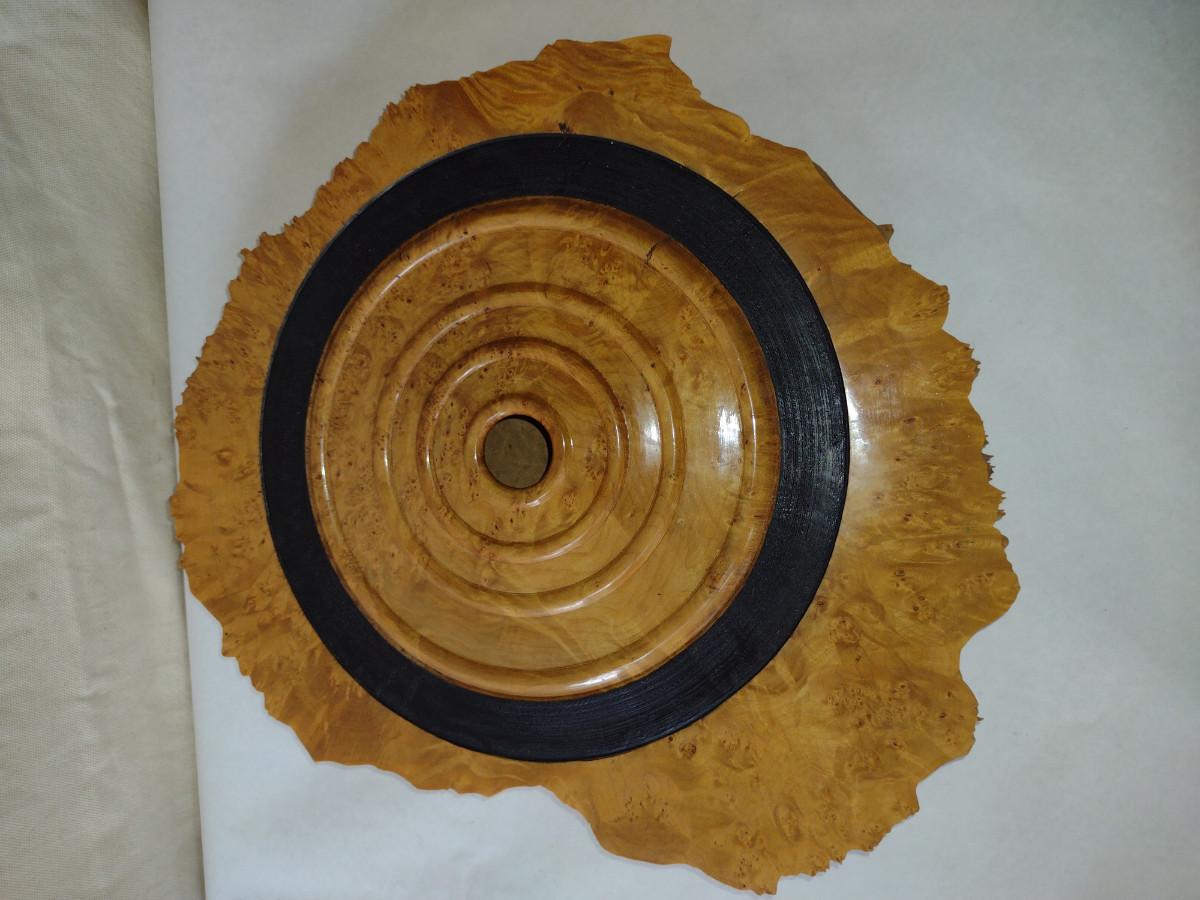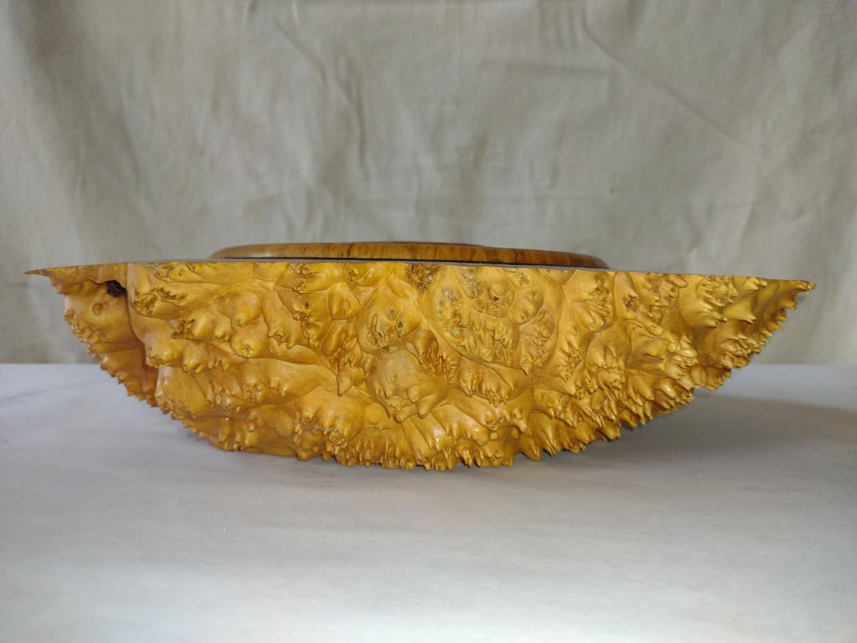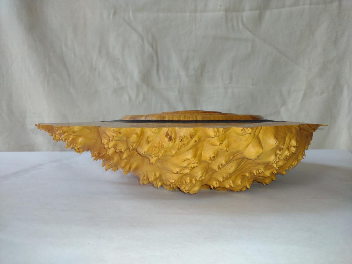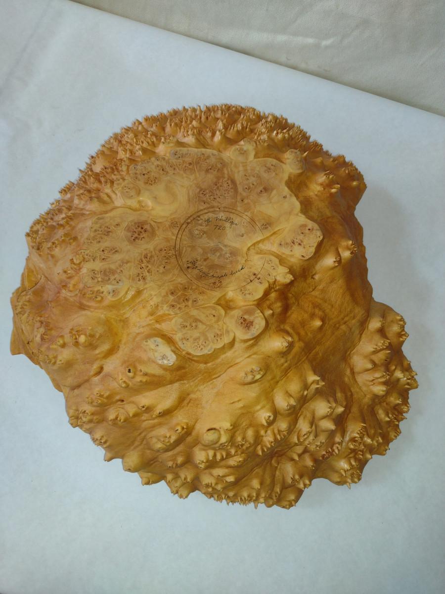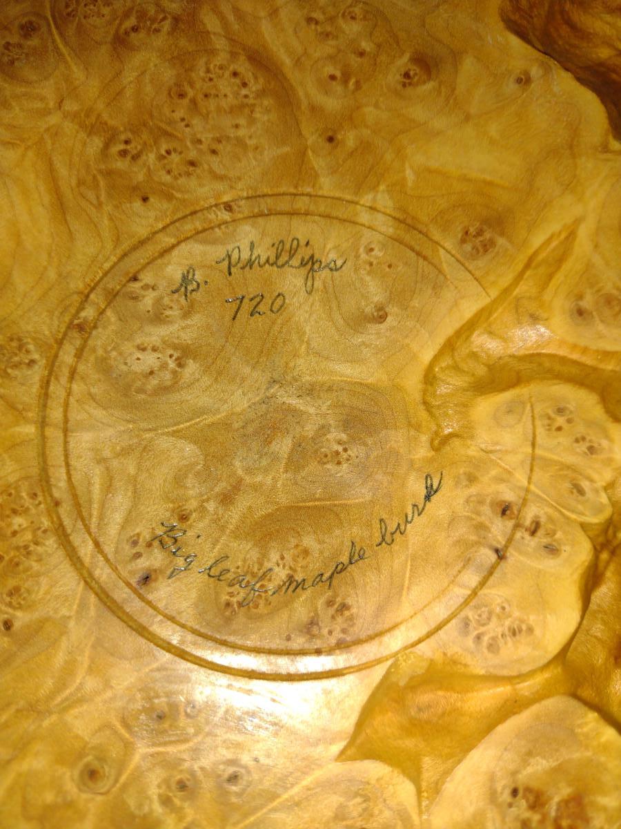 Large, Hand Crafted, Turned Wood Vase by Bobby Phillips- Big Leaf Maple Burl (#42). Item measures approx 17" in diameter.