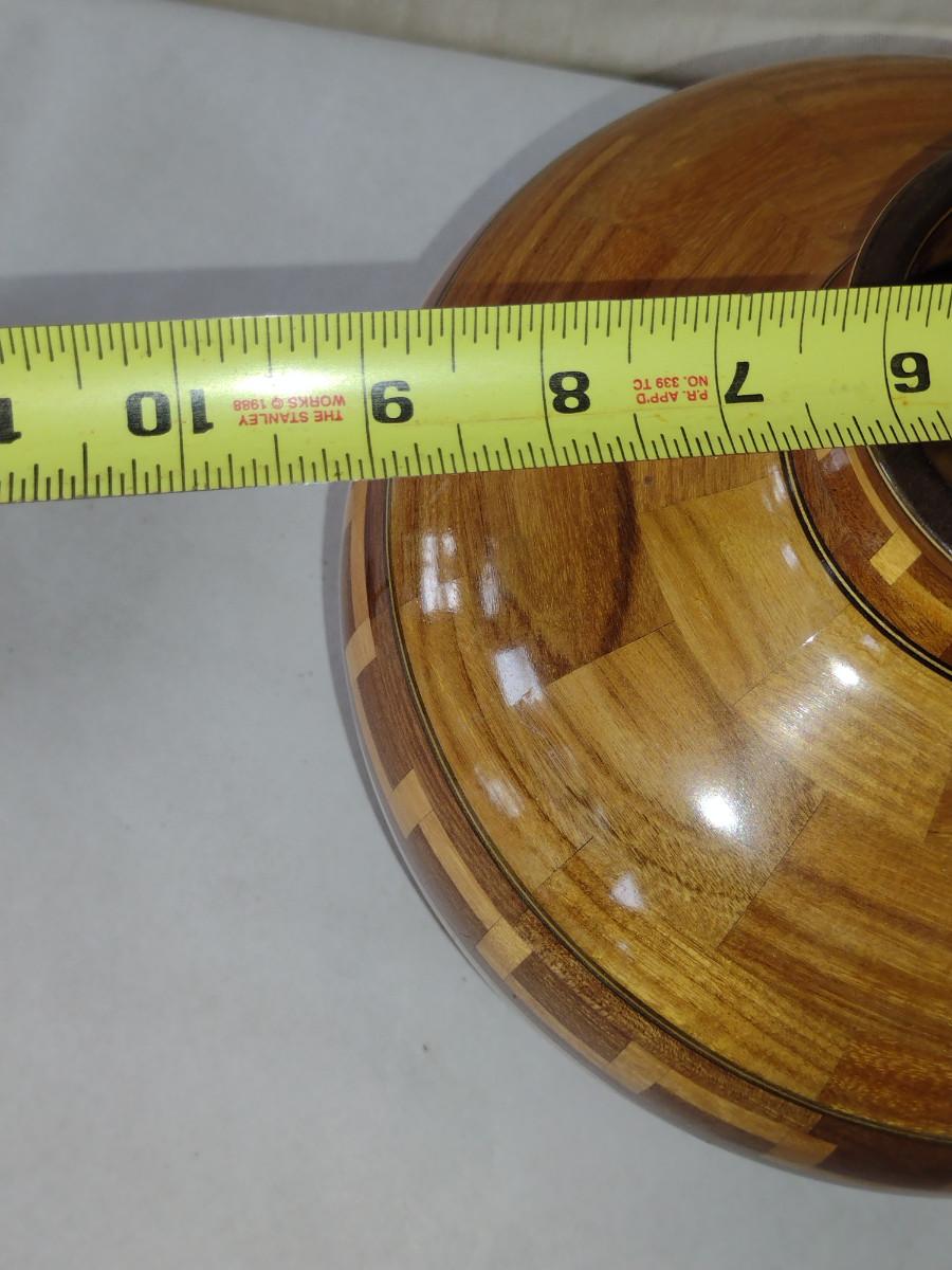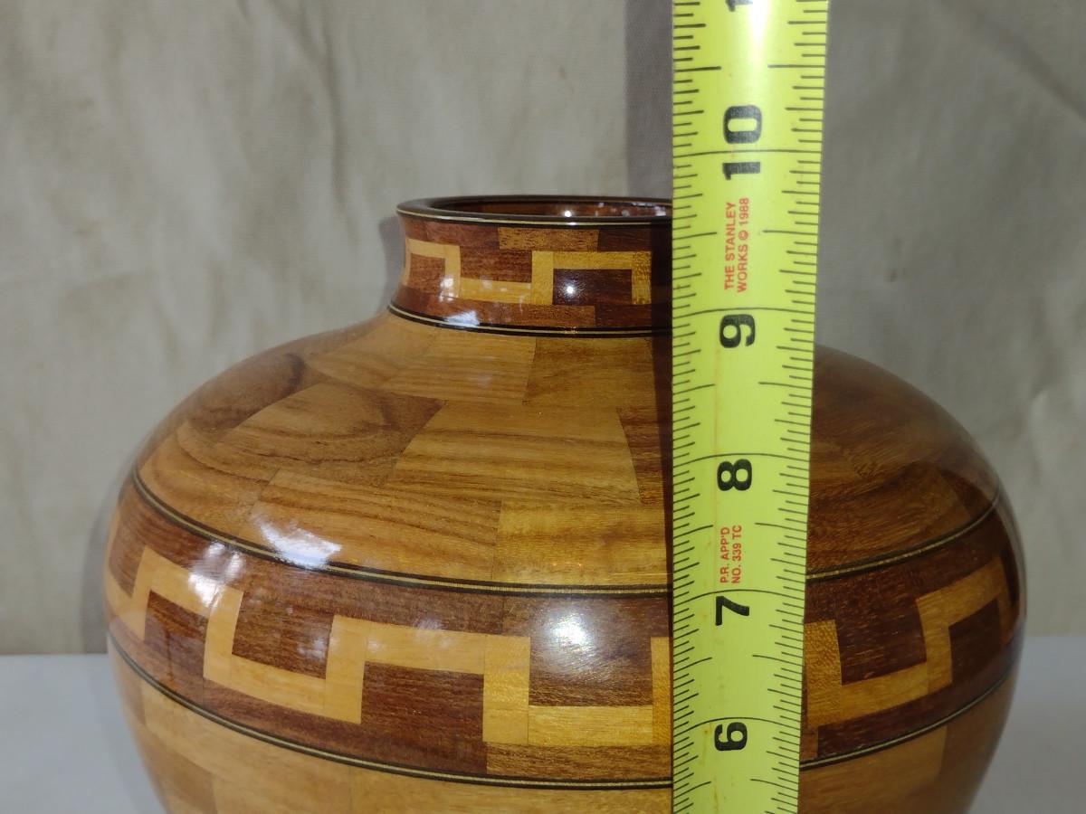 Large, Hand Crafted, Turned Wood Vase with Inlay (#45). Item measures approx 9 3/4" tall.