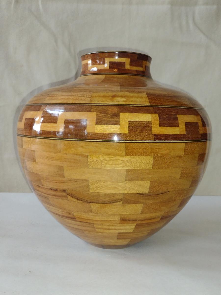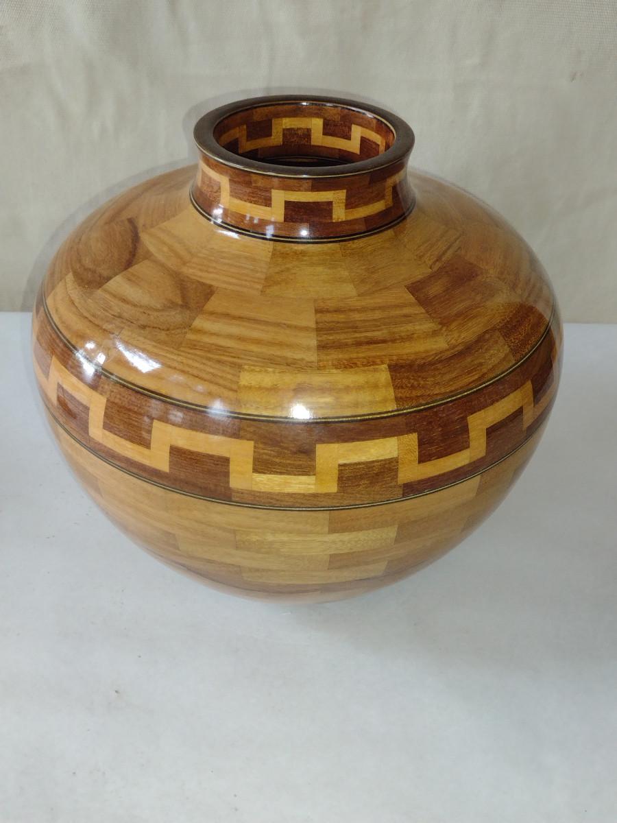 Large, Hand Crafted, Turned Wood Vase with Inlay (#45).