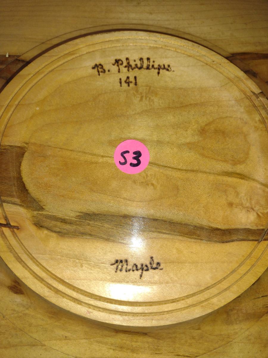 Large, Hand Crafted, Turned Wood Bowl by Bobby Phillips- Maple (#53). Item measures approx 22 1/4" in diameter.