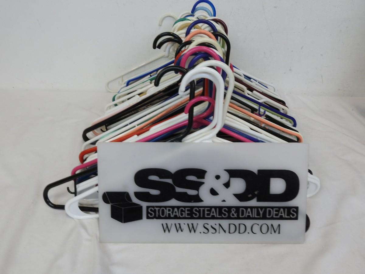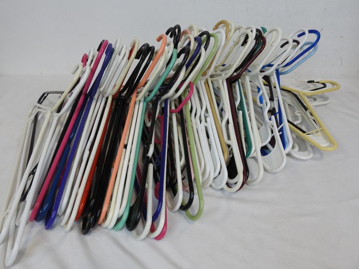 Large Lot Of Plastic Hangers, 70+ In Assorted Colors