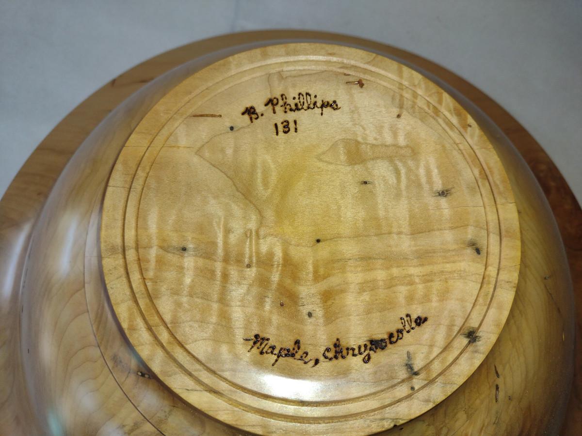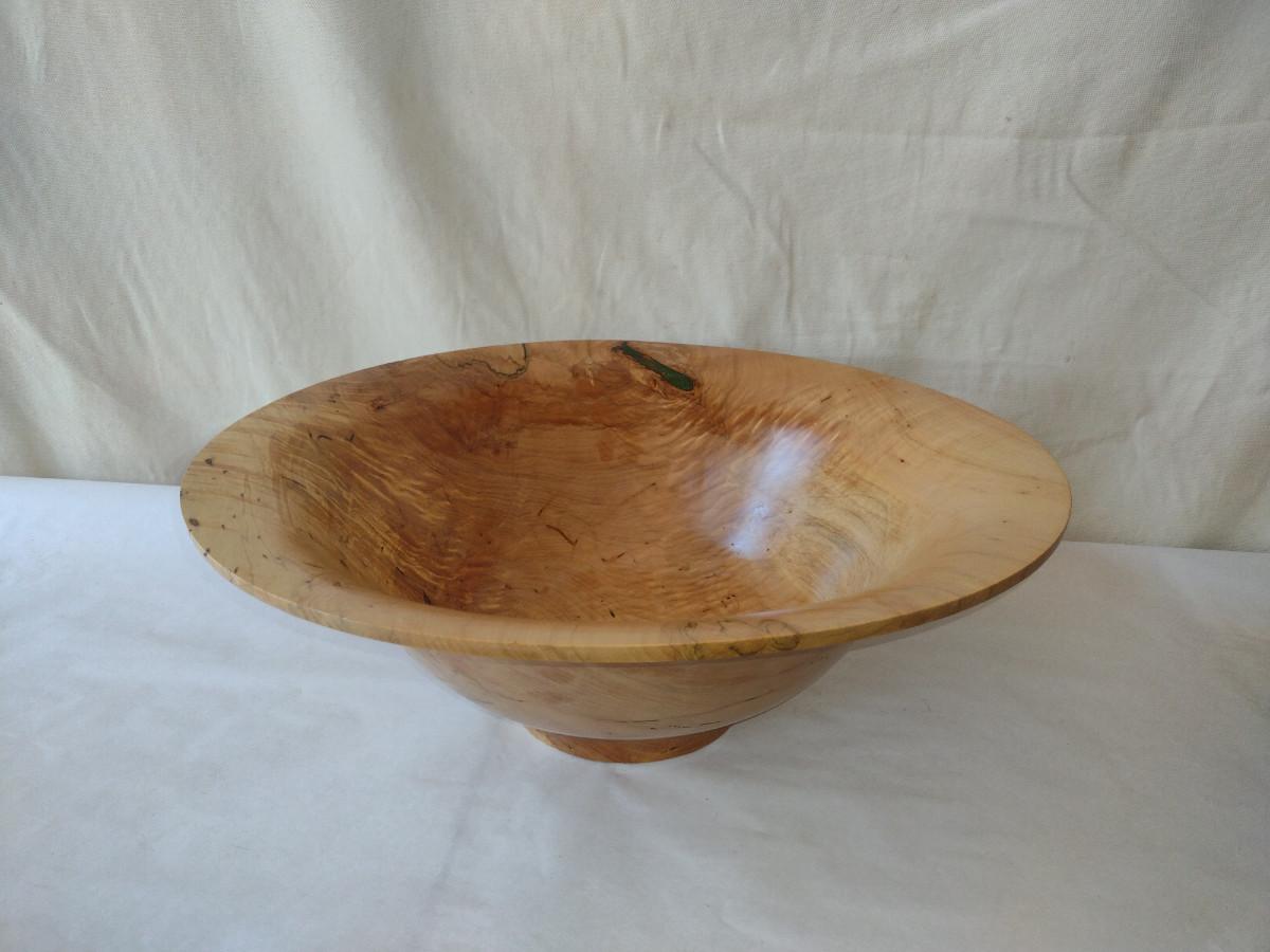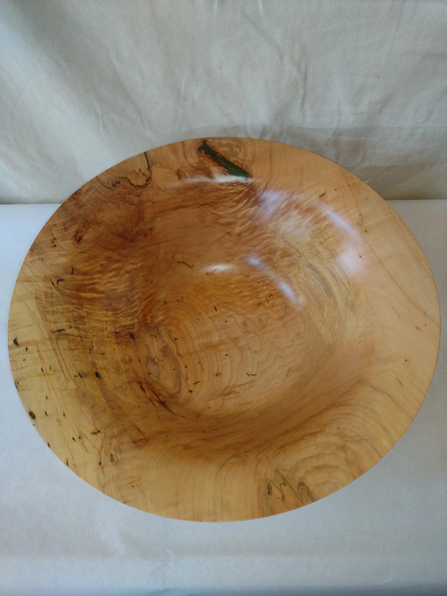 Large, Turned Wooden Bowl by Bobby Phillips-Maple and Chrysocolla (#75). Item is approx 21 1/4" in diameter.