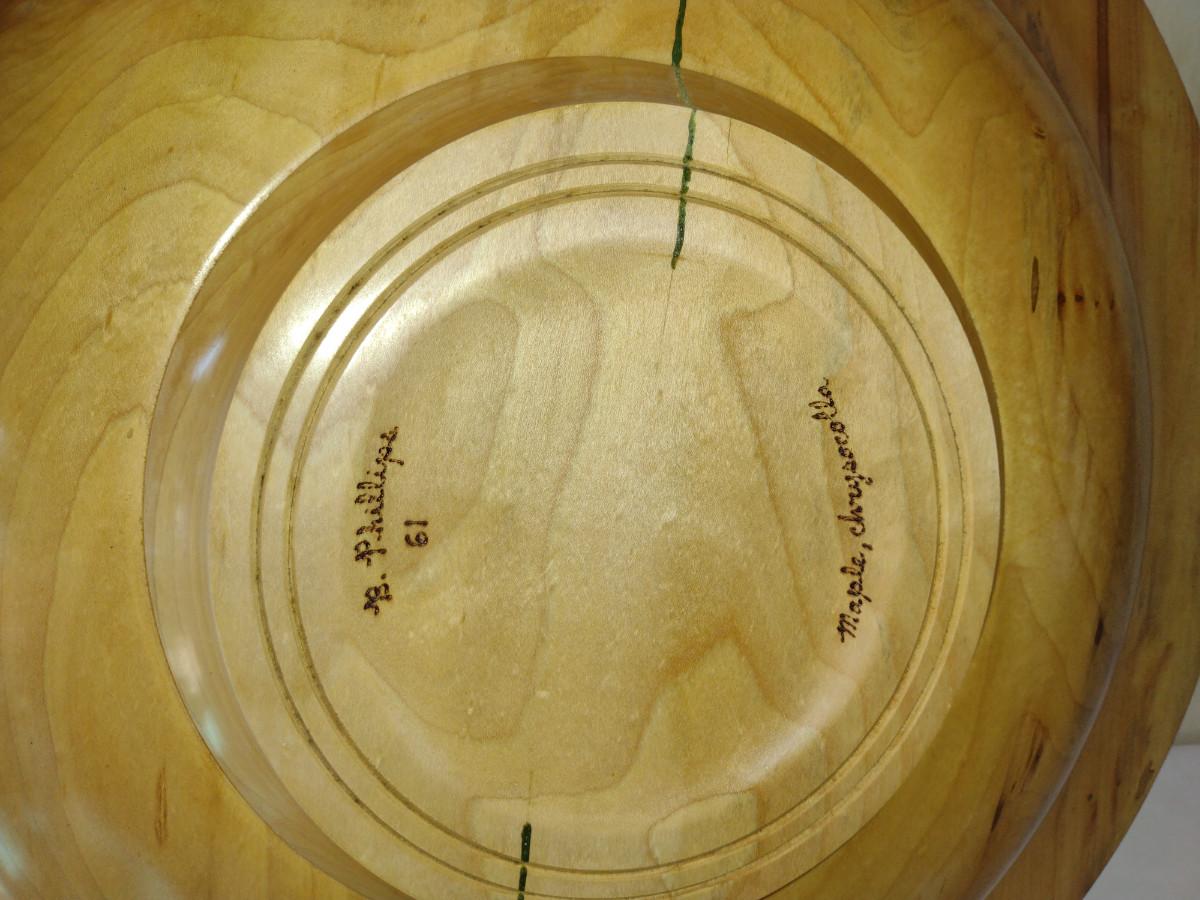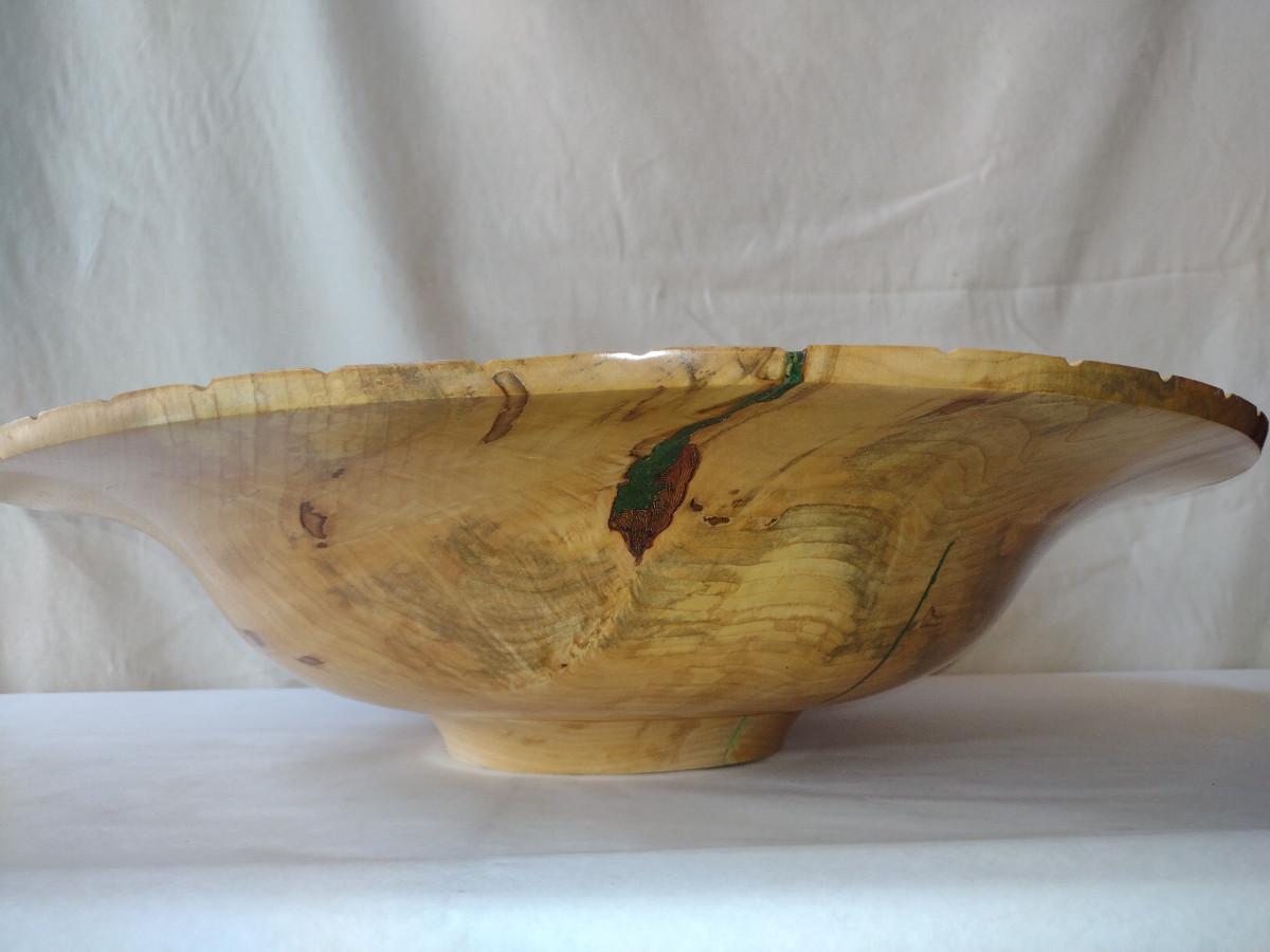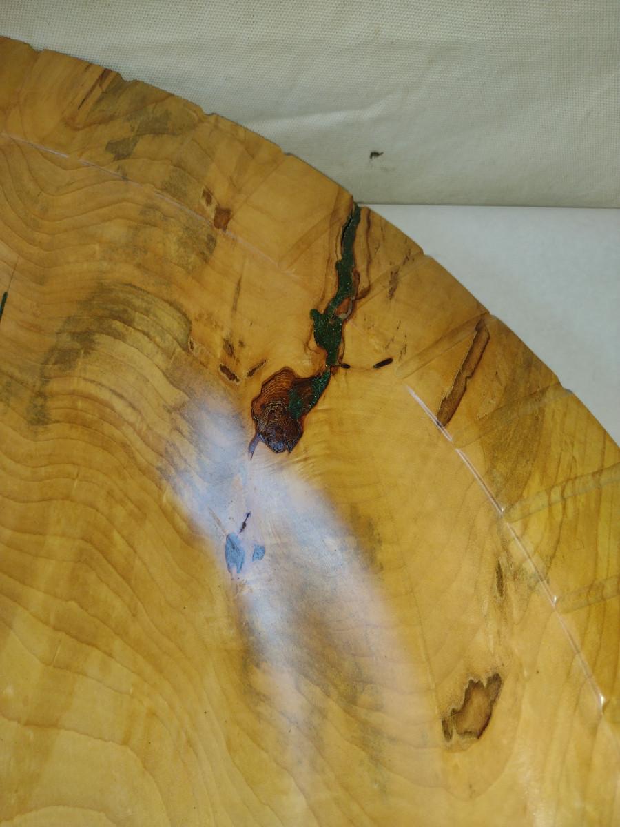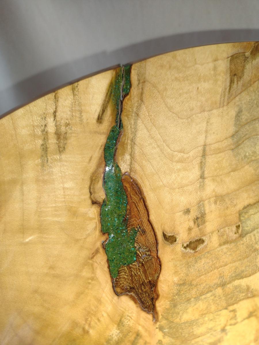 Large, Turned Wooden Bowl by Bobby Phillips-Maple and Chrysocolla (#86)