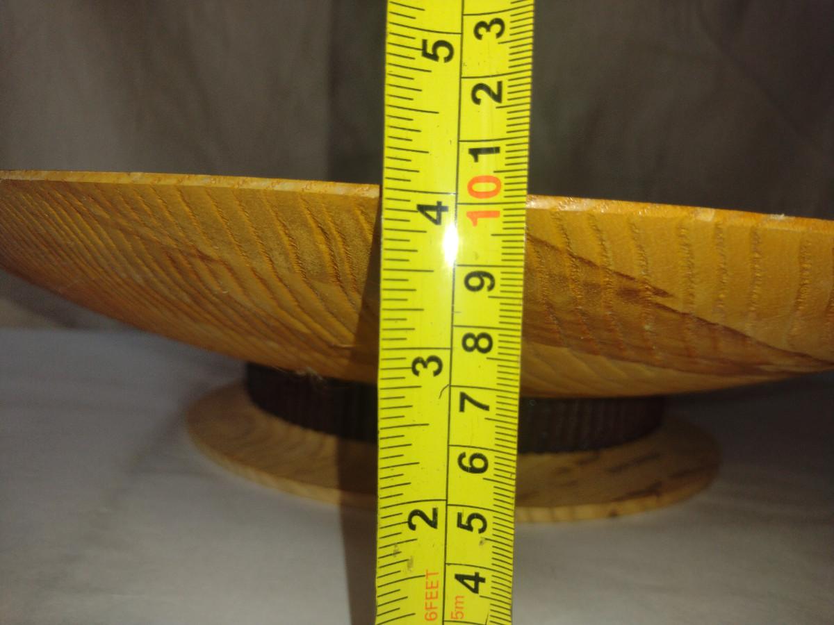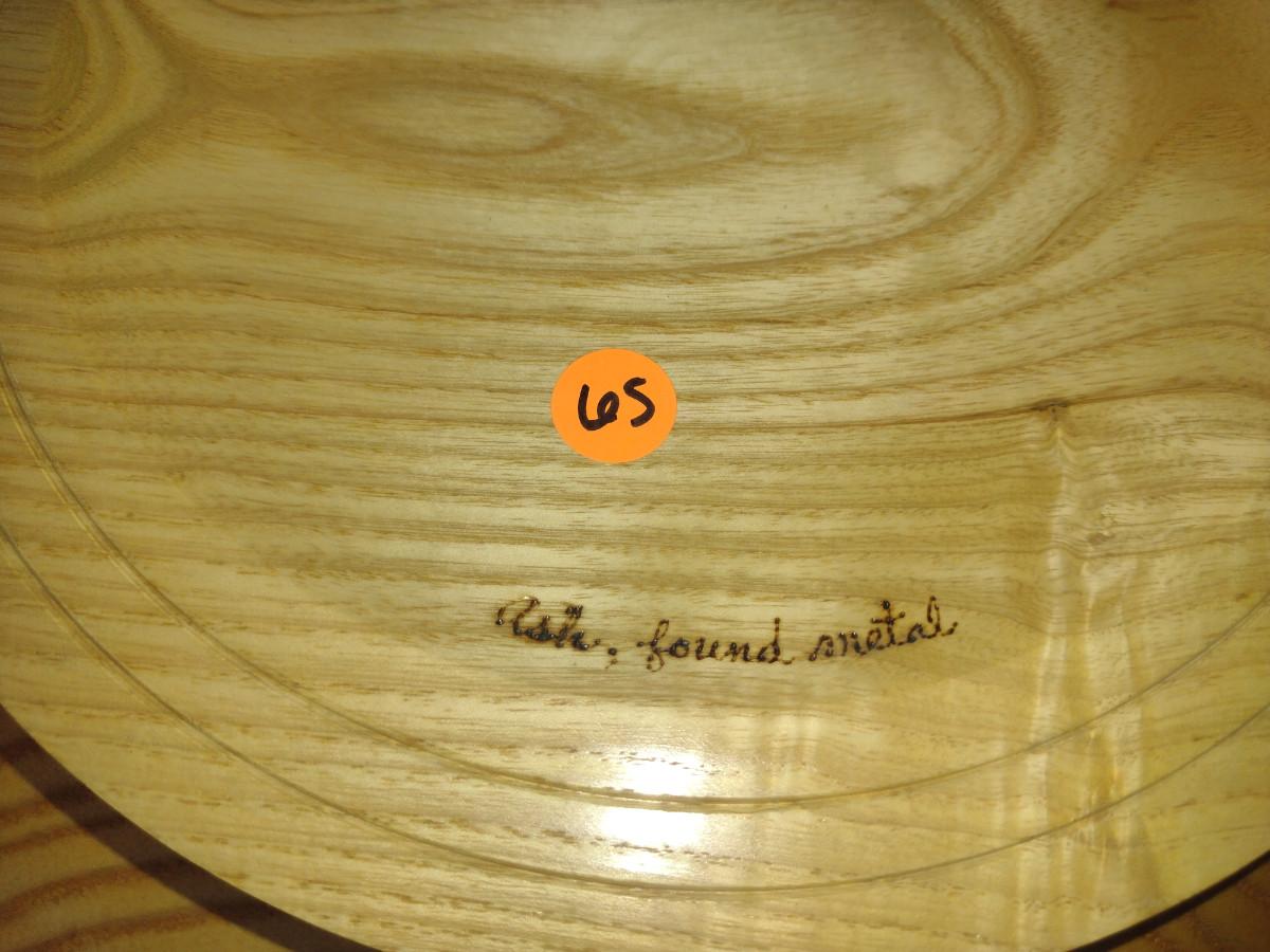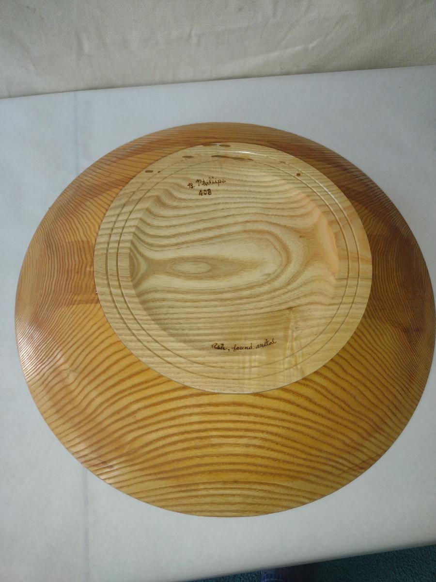 Large, Turned Wooden Footed Bowl by Bobby Phillips- Ash with Found Metal Band at Base (#65)