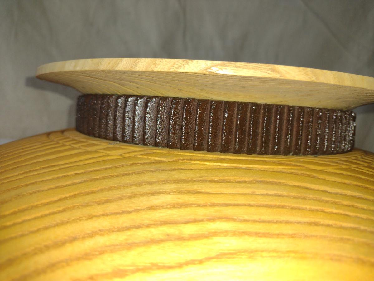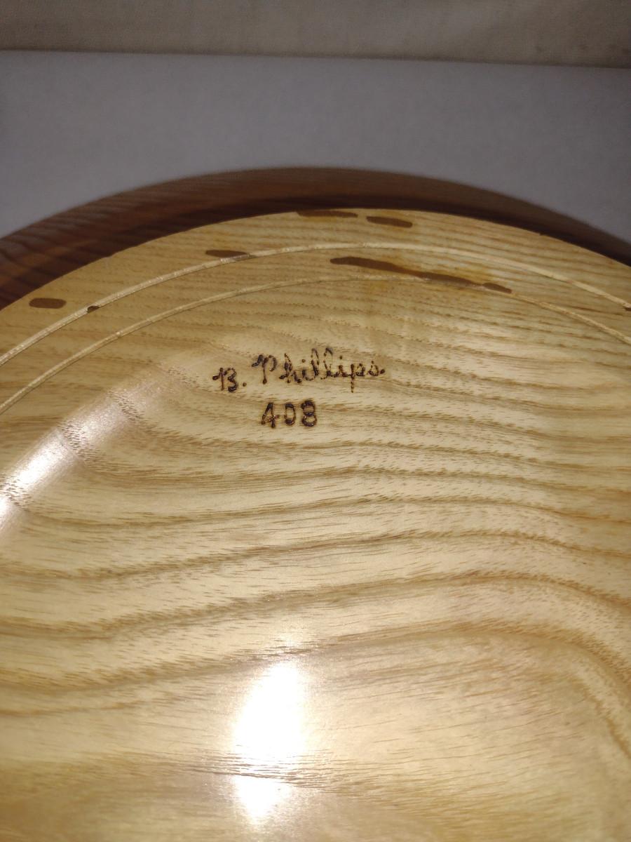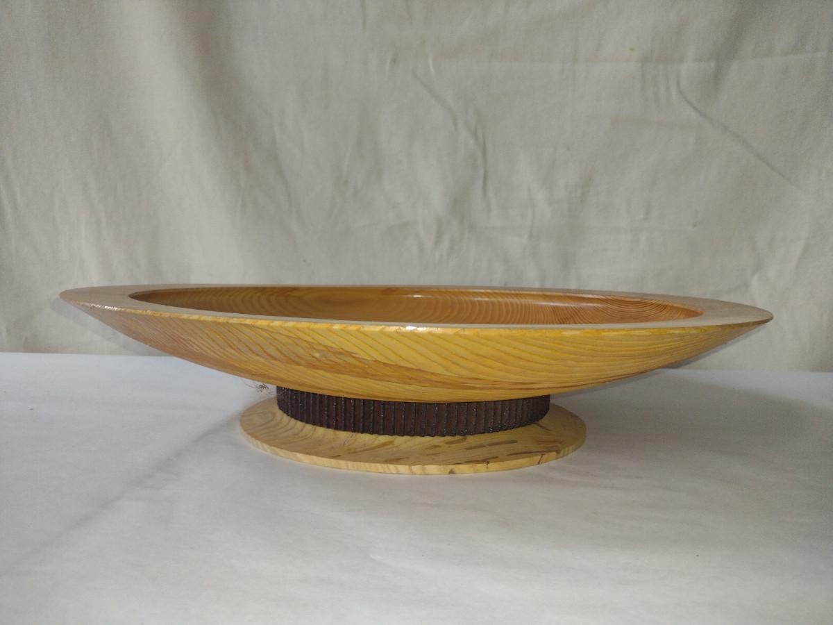 Large, Turned Wooden Footed Bowl by Bobby Phillips- Ash with Found Metal Band at Base