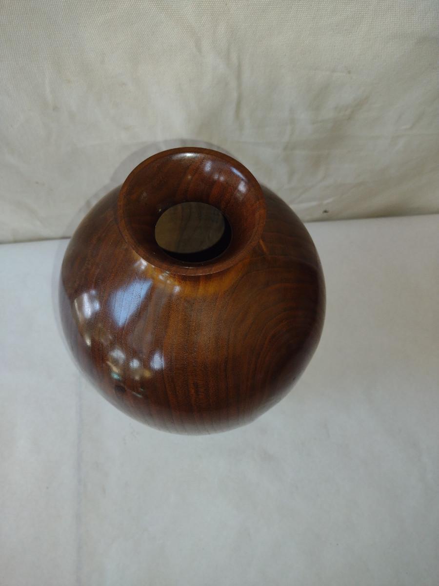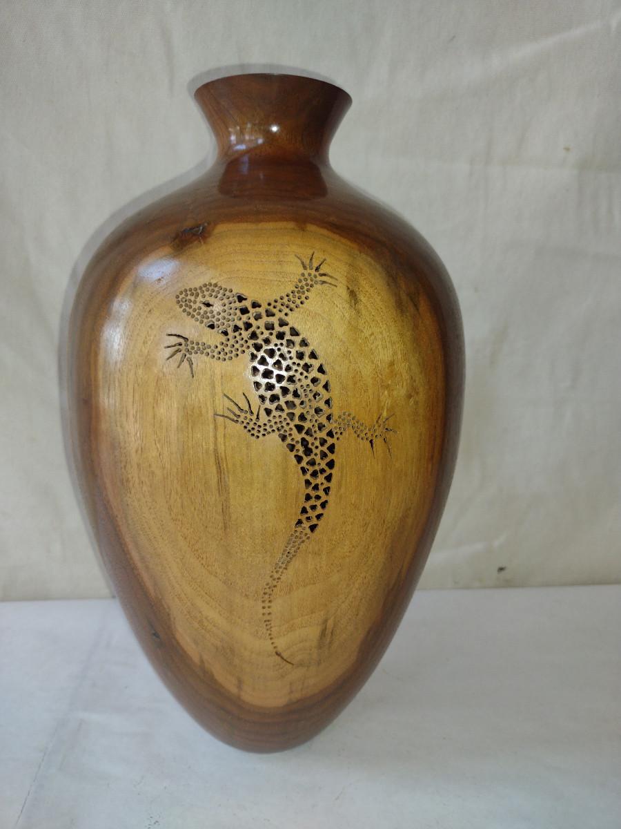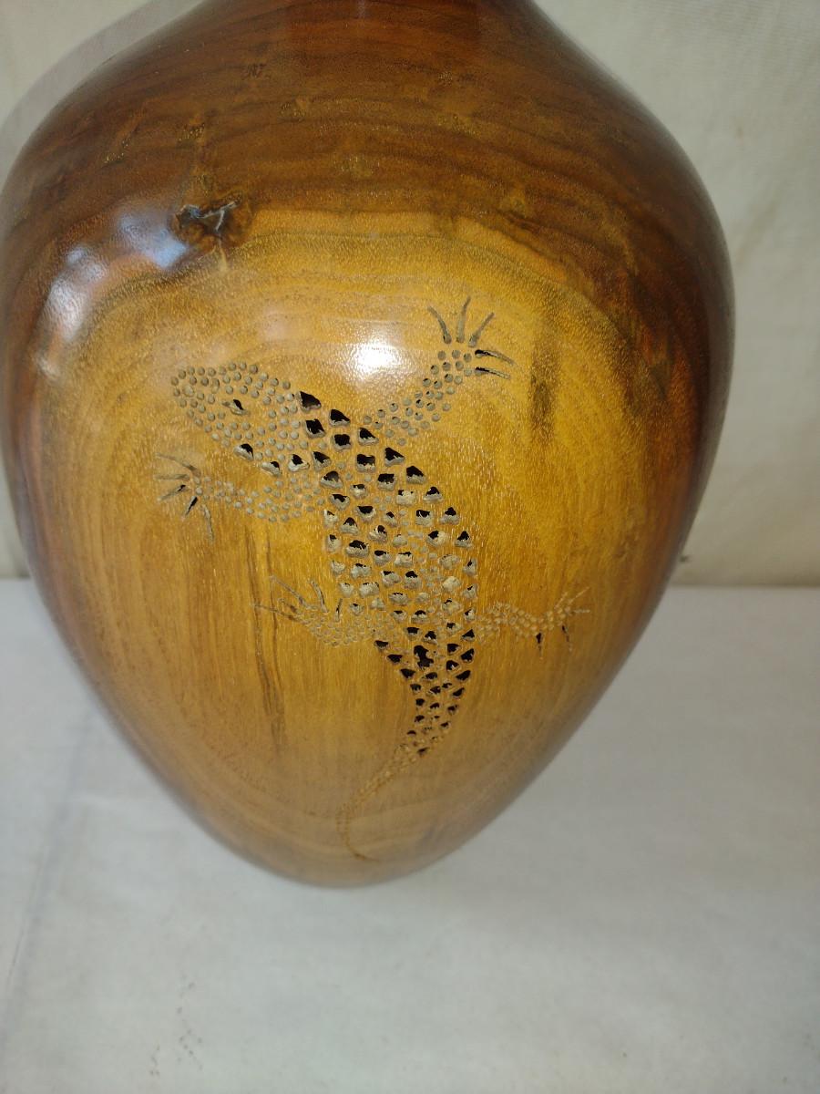 Large, Turned Wooden Vase with Reticulated Gecko Design by Bobby Phillips- Walnut (#83)