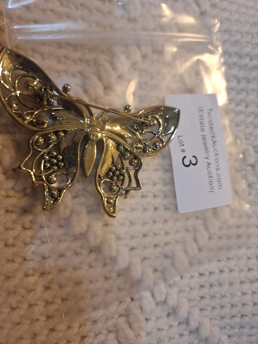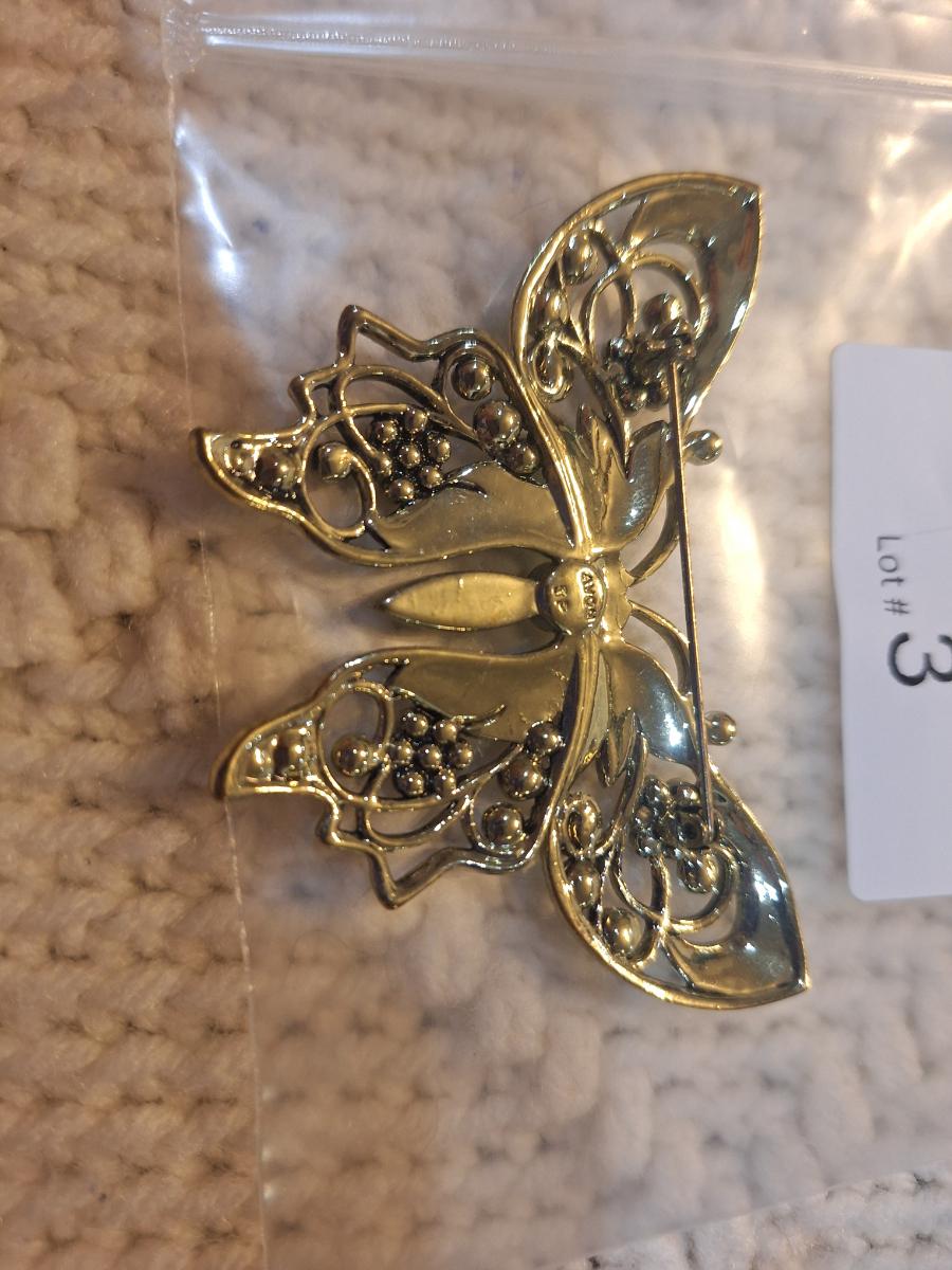 butterfly is almost 3 inches wide, compare it to the auction sticker in first photo that is 2.25 inches wide.