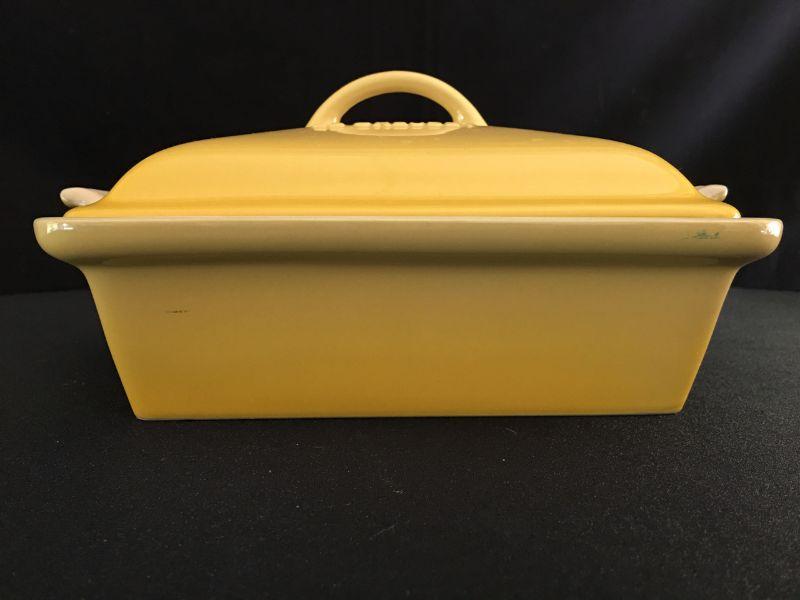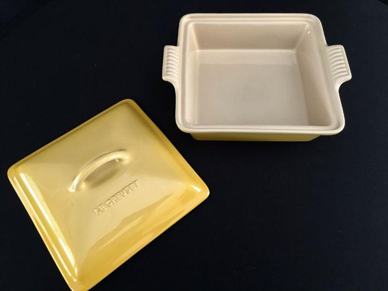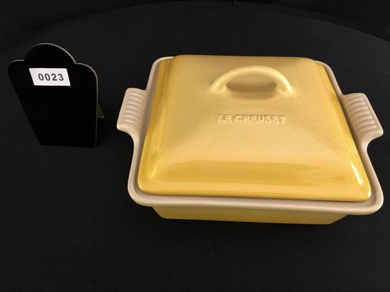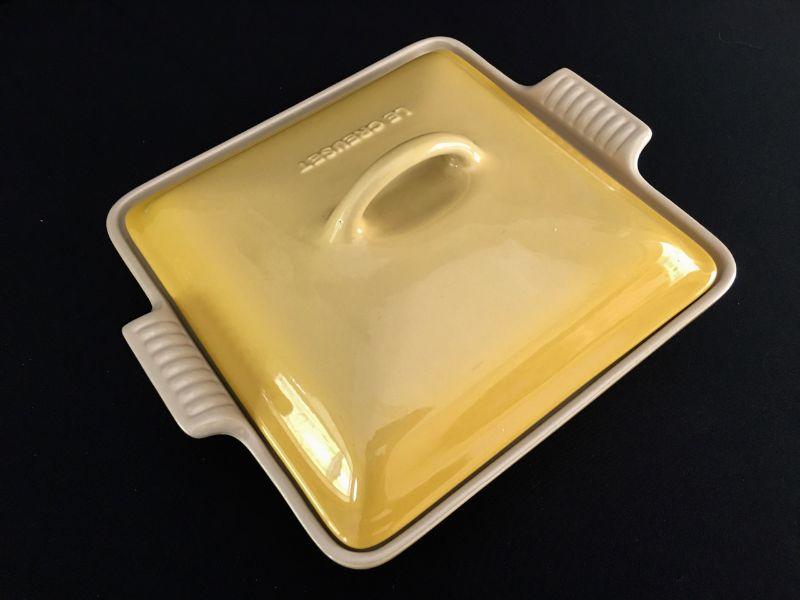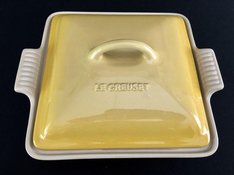 Le Creuset 9" Square Covered Casserole dish in creamy yellow. Pristine! Item#23