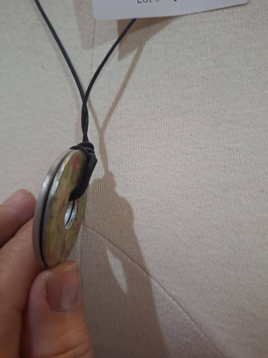 leather strap with metal pendant - different colors on each side