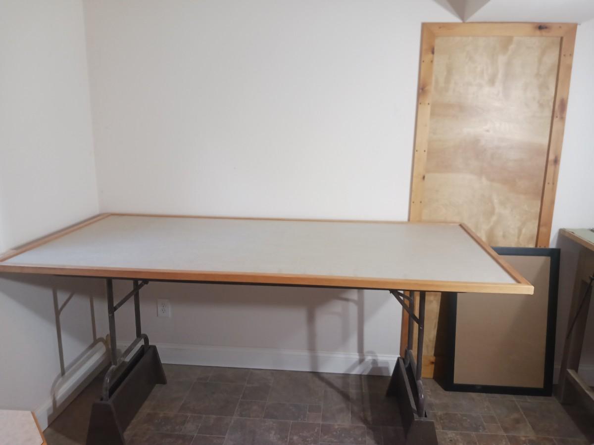 FOLDING PROJECT TABLE ON HANDMADE LIFT STANDS