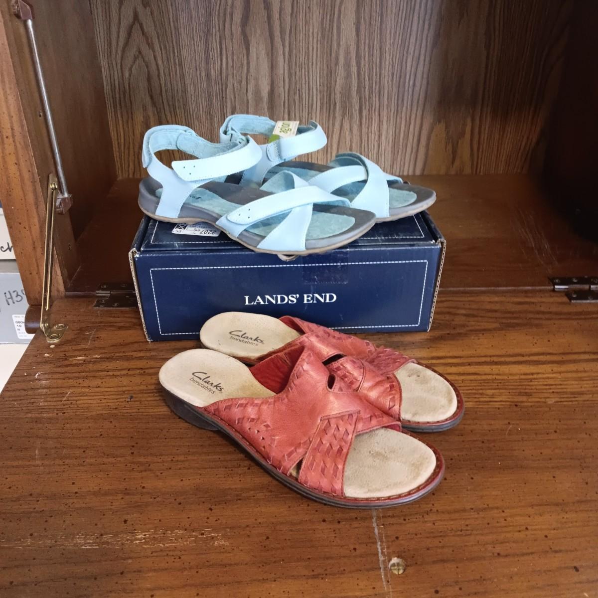 LIKE NEW LADIES LANDS' END AND CLARK'S SANDALS SIZE 9
