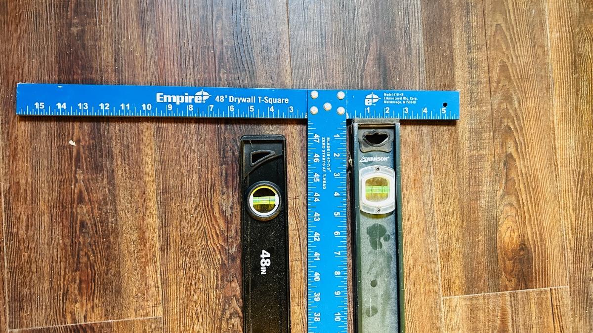 LIKE NEW LEVELS AND DRYWALL SQUARE 72” SWANSON MAGNETIC LEVEL, 48” HUSKY LEVEL AND 48” EMPIRE DRYWALL SQUARE