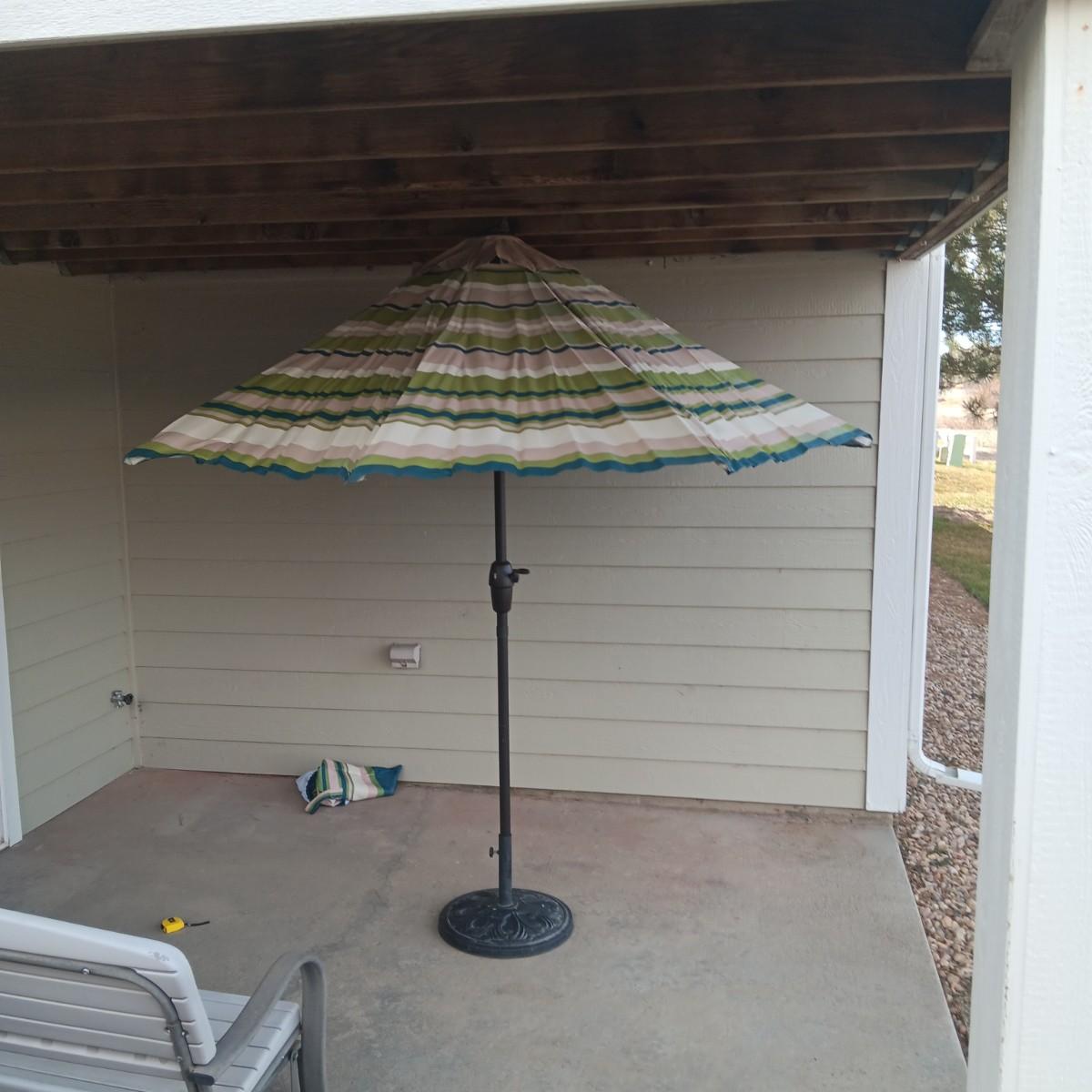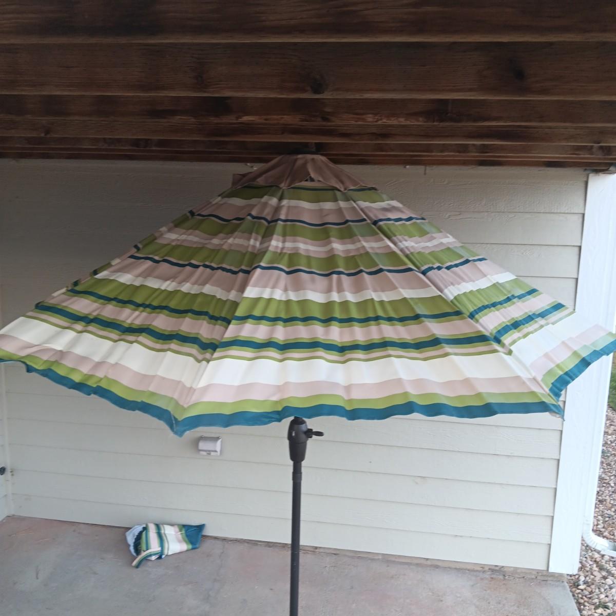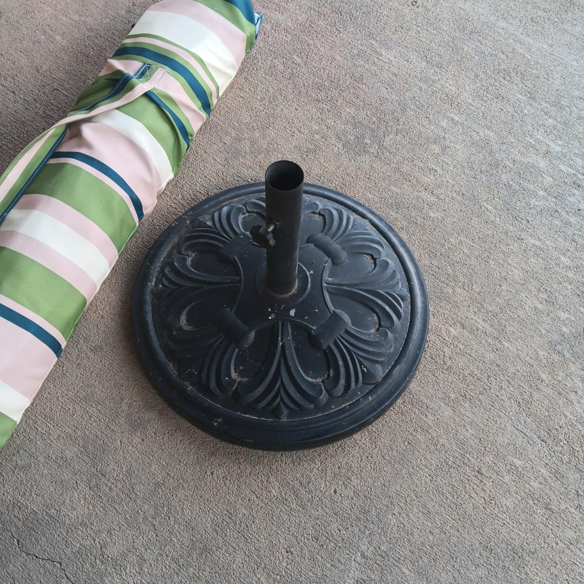LIKE NEW PATIO UMBRELLA WITH METAL STAND