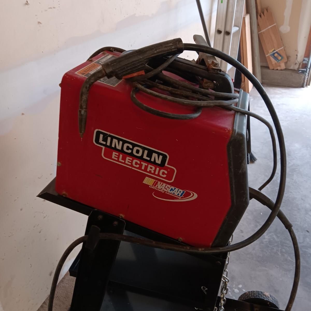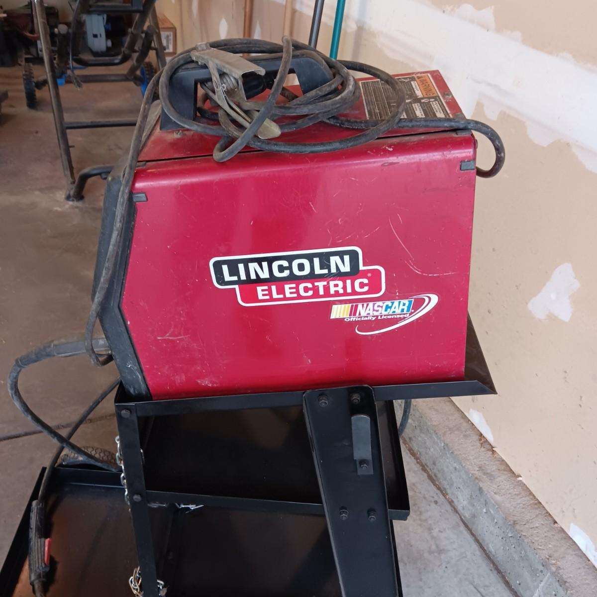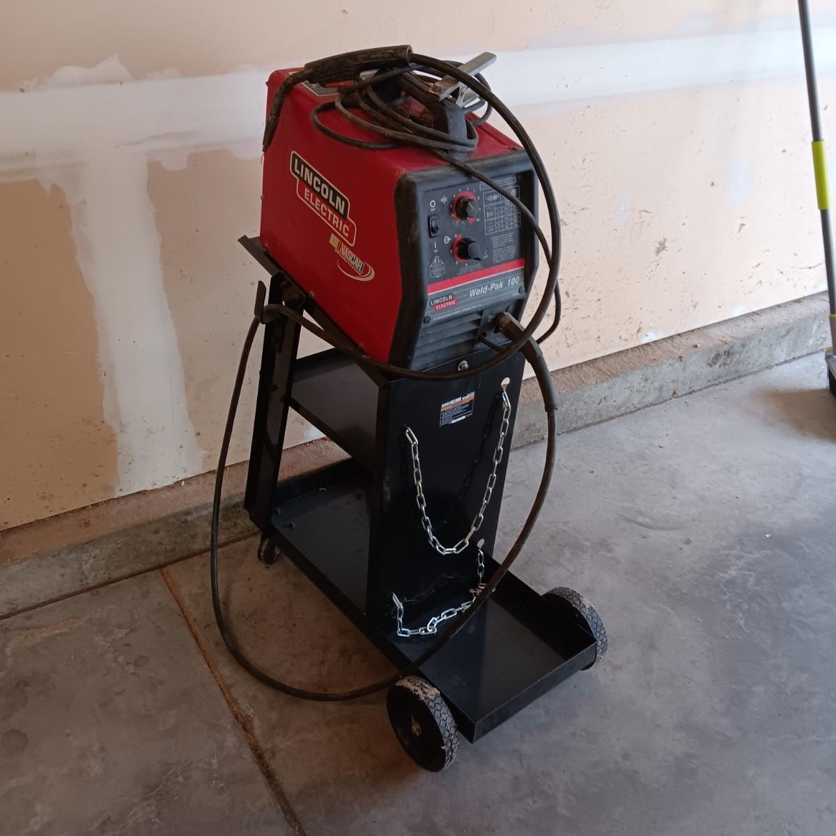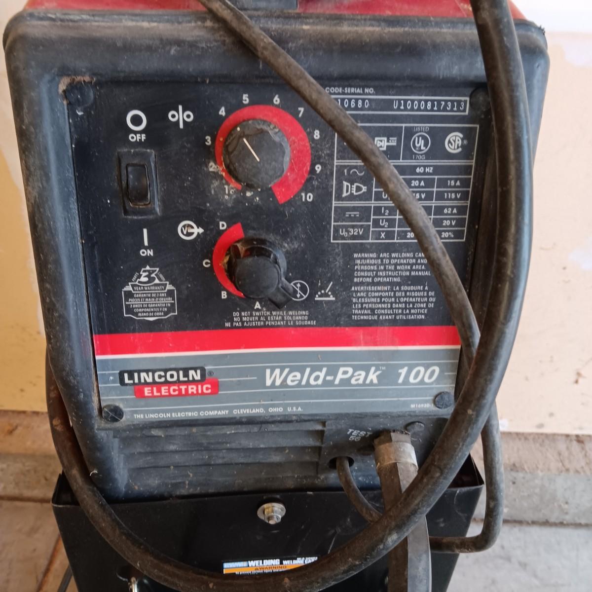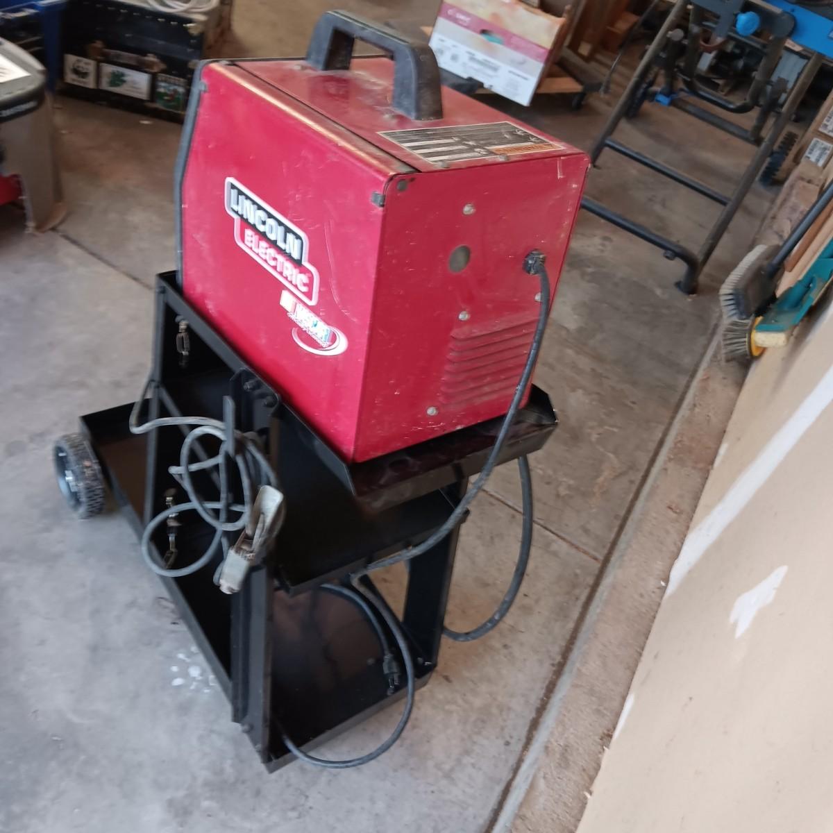 LINCOLN ELECTRIC WELD-PAK 100 WELDER ON A PORTABLE STAND