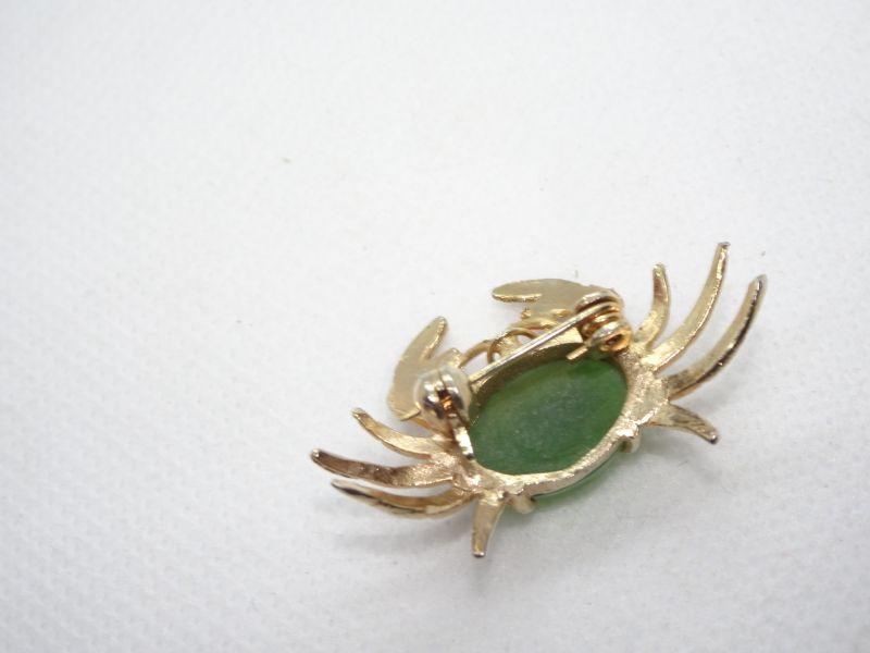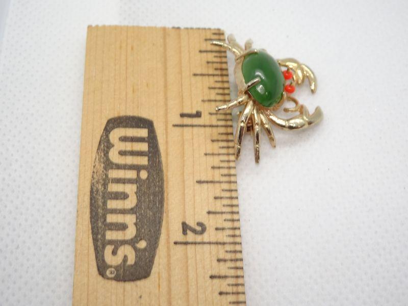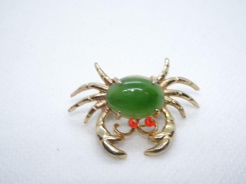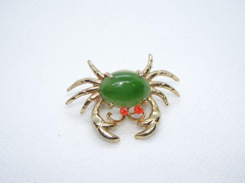 Little Red Eyed Jade CRAB Pin, Gold Tone