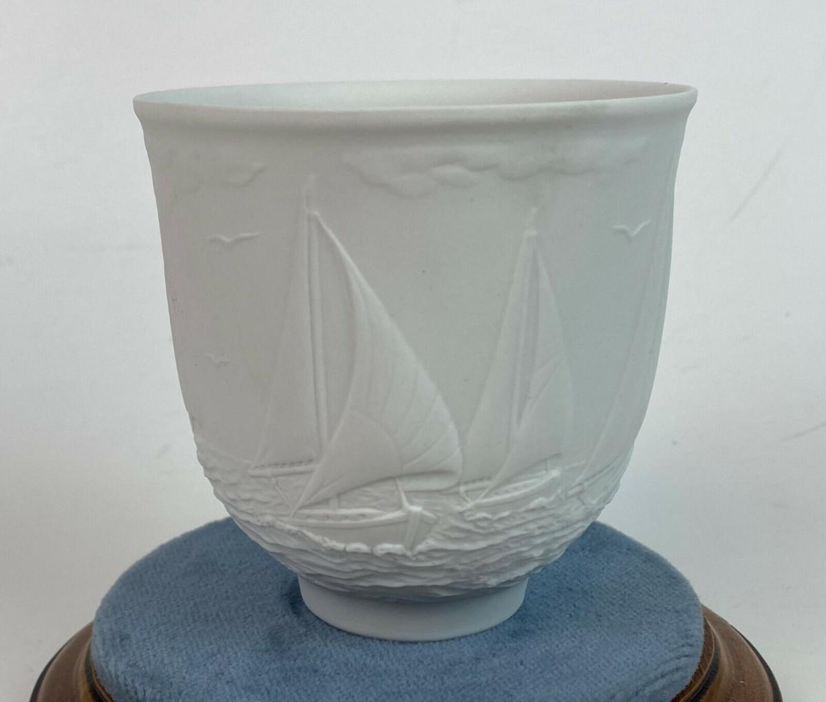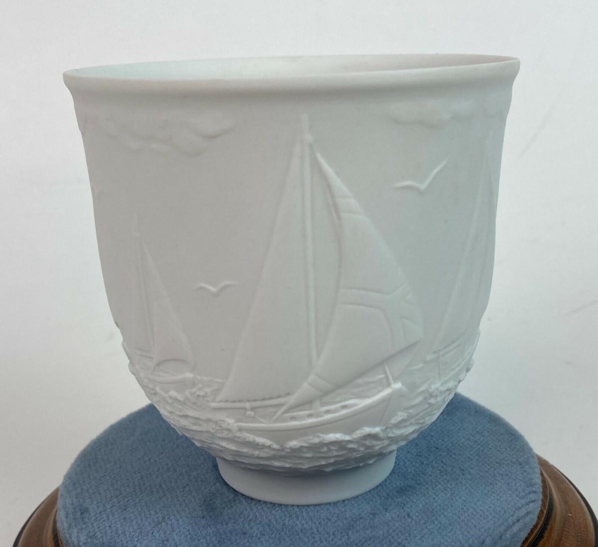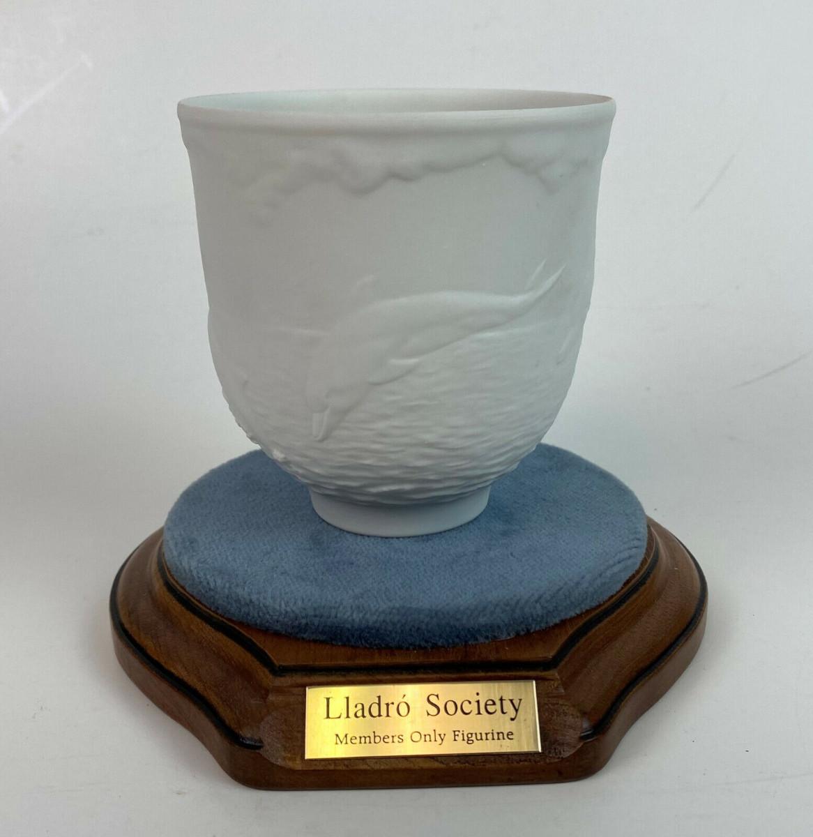 Excellent condition on this pair of Lladro Collectors Society votive candle holders from 1997 and 1998 with one(1) felt covered wooden 5.5" base...The porcelain cups are 3.5" high...Sailing the Seas and Dolphins at Play.