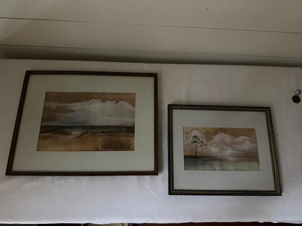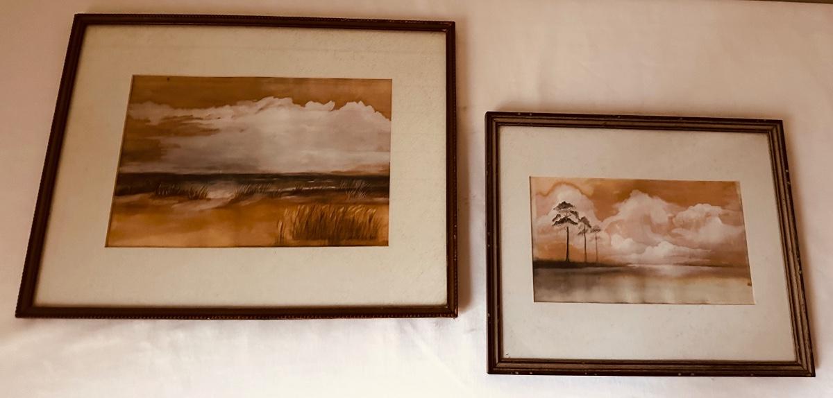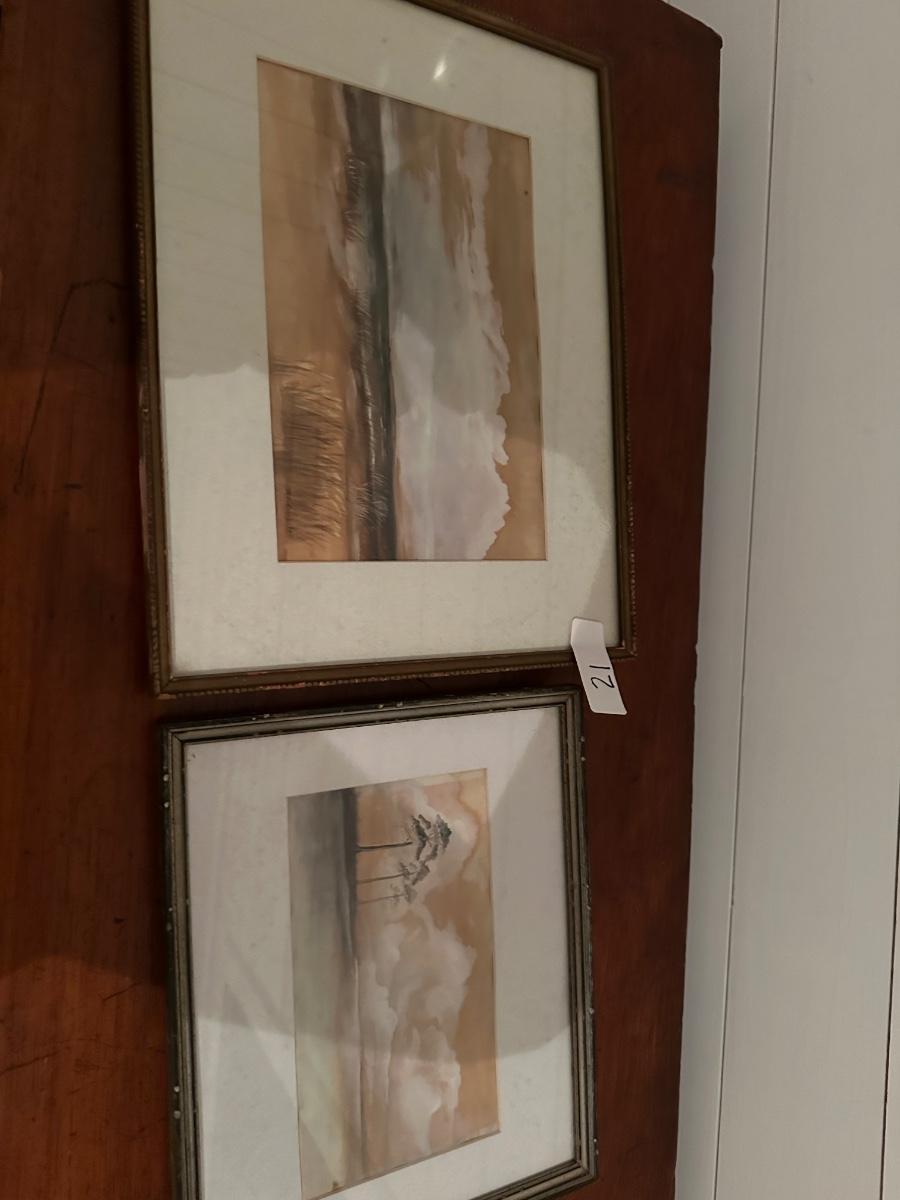 2 FRAMED BEACH LANDSCAPES, SLIGHT DISCOLRATION ON MATS